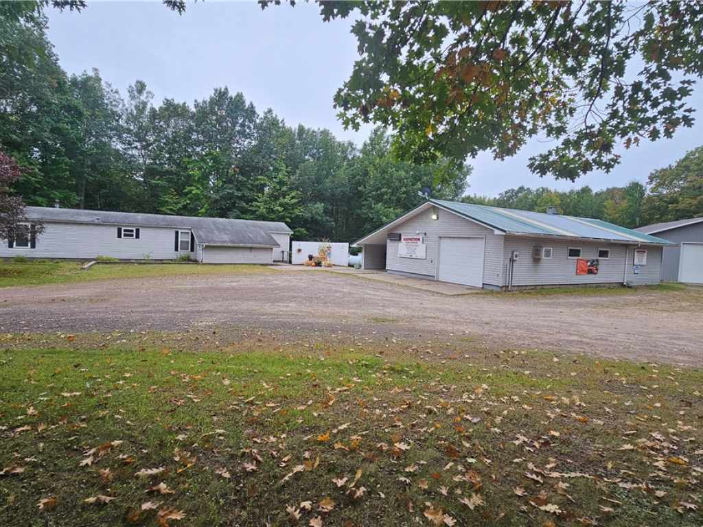 Turnkey opportunity being sold as-is, where-is! This property includes Harnstrom Small Engine Sales and Service Shop, a well-established business space, along with a comfortable 2 bed, 2 bath modular home. Extras include a detached 2-car garage with dual lean-to's and a large pole building for storage or expansion. Pole building has in-floor heat lines ran, just needs boiler system and insulation. Perfectly located with ATV/UTV and snowmobile trail access right out the back, making it a rare find for business and recreation. The opportunities are endless with this property. (Example: would make a great ATV/UTV and snowmobile repair and rental shop)