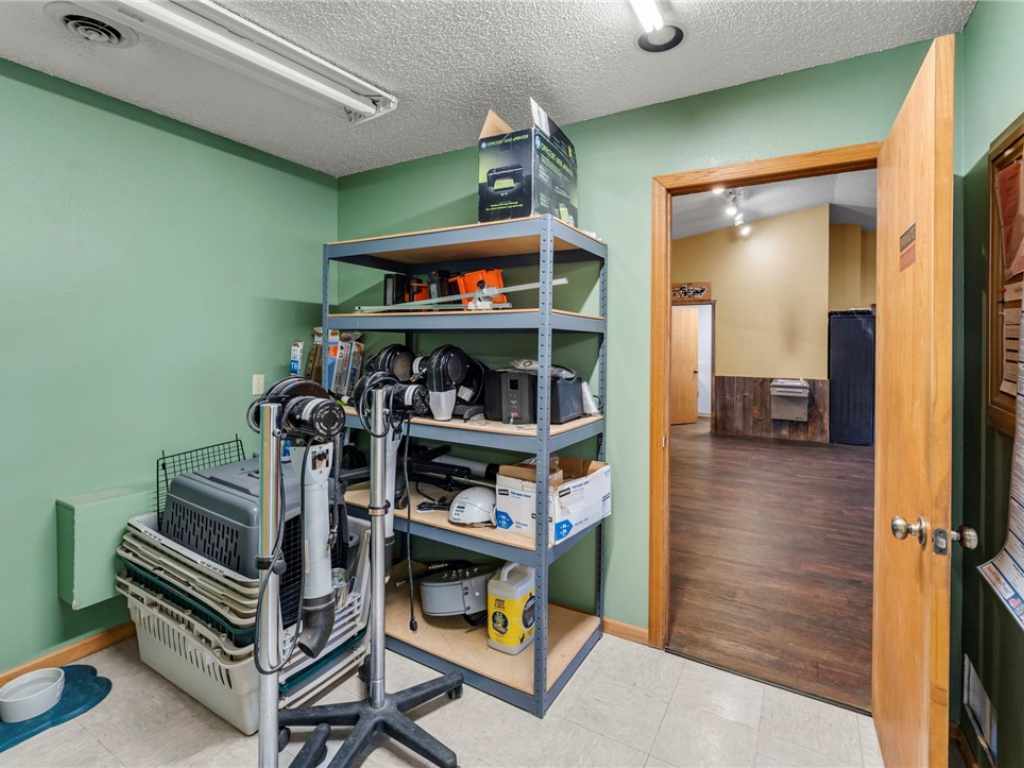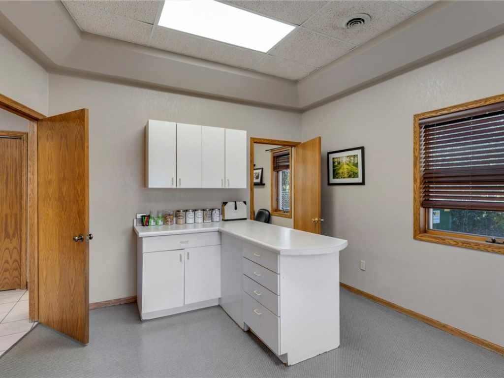 Prime commercial opportunity with visibility and accessibility just off Hwy 8 in St. Croix Falls Wisconsin only 5 miles from the beautiful St. Croix River and Minnesota border. This well maintained one-story, 4763 square foot professional office space is currently used by the Valley View Veterinarian Clinic which is soon to be relocating. Utilities include 2 forced air furnaces, 2 air conditioning units, and city water and sewer. Also included in the sale is the wrap around reception desk, medical exam tables, built-in shelving and counters, built-in kennels, 3 refrigerators, 1 washer, and 1 electric dryer. Versatile space featuring three store front facing exterior doors, with the option to lease out spaces currently designated as training and office space. Exterior lighting and a security system are in place. Signage includes a professional lit up sign along HWY 8 and a printed sign on the front of the building. There are 2 chain link fences and 1 composite privacy fence to the South and South West of the building. Parking is convenient with 9 spaces immediately in front of the property and additional parking to the North. Located West of the Gateway Professional Building and across the street from Dallas Auto Sales. This is a well-established, adaptable space with potential uses being a pet grooming salon, doggy daycare or animal rescue, insurance or real estate office, chiropractic clinic, health and wellness facility, retail, digital marketing services, cleaning services, or daycare. With its proximity to a vibrant business district, this property not only meets the needs of a flourishing business but also embodies the spirit of entrepreneurship. Opportunity awaits!