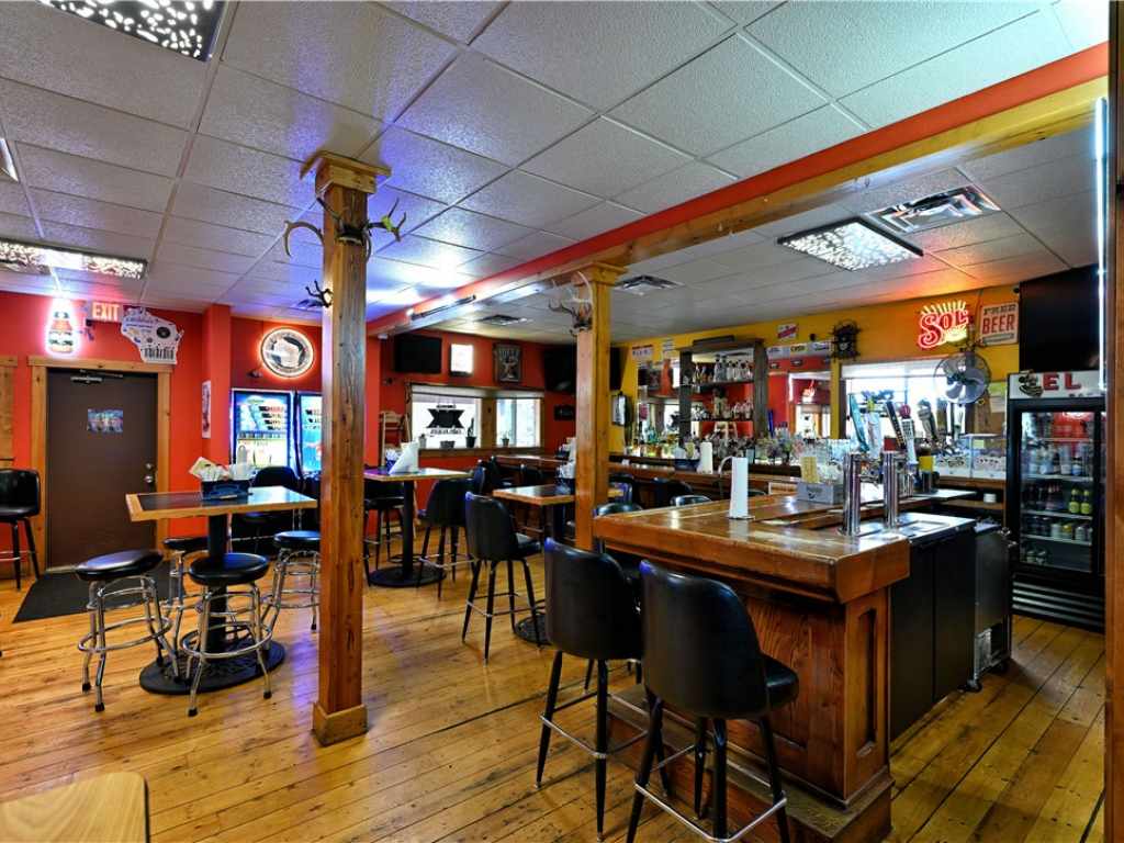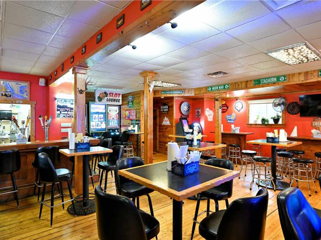 Great opportunities with this commercial property with acreage and a pole building for additional potential income and storage. Current bar and restaurant in great condition is currently leased. Plenty of outdoor space with horseshoe, pits and a nice fire pit area and beautiful backwoods. Great opportunity for craft shows and outdoor events with ample parking. Newly finished 2 bedroom apartment. Updates include furnace and ac unit. Work with the existing tenant or create your own destiny.