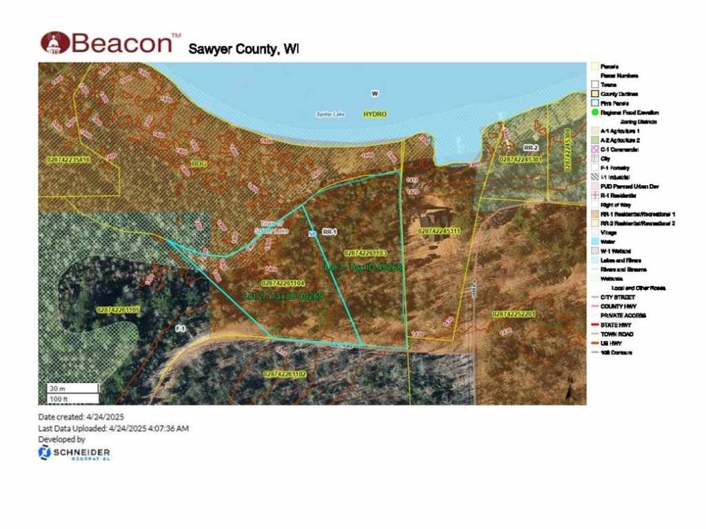 5% Price Reduction in October 2025! Vacant Land with 2 gorgeous Northwoods building sites. Don't miss the virtual tour in this listing! Over 400 feet of lake front on Big Spider Lake in Hayward, WI. Panfish and muskellunge "muskie" are abundant. There is ample space to build a single-family home and a garage for your "toys". Or a family compound with 2 homes! Only 20 minutes from downtown Hayward, 15 minutes from the OO Birkie XC ski trail head, and access to the snowmobile trails. This is a "must-see" in person to envision your lakefront dream home. Well and septic will need to be installed. The lot lines shown on aerial drone footage and photos are approximate and for reference only.