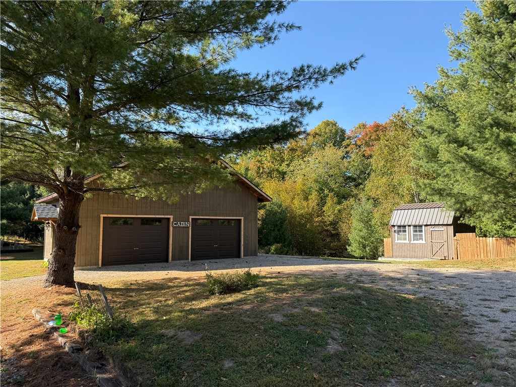 Peaceful country getaway near Shell Lake! Built in 2025, this 24 x 30 ft garage sits on just under 2 acres surrounded by mature trees and scenic trails. The upper level offers great storage or potential to finish into living space. Additionally there is a finished garden shed that provides extra space for storage or could serve as a cozy bunkhouse. The property has been soil tested for a conventional septic system, and blueprints are available for an attached 2-bedroom, 2-bath home or cabin. Enjoy the awesome campfire area, abundant wildlife, and direct ATV access right from your newly blacktopped road. Conveniently located near Shell Lake and many other area lakes with sandy beaches, plus snowmobile and ATV trails. Whether you’re seeking a weekend getaway, future building site, or extra space for your recreational toys, this peaceful property offers endless possibilities in a quiet Northwoods setting.