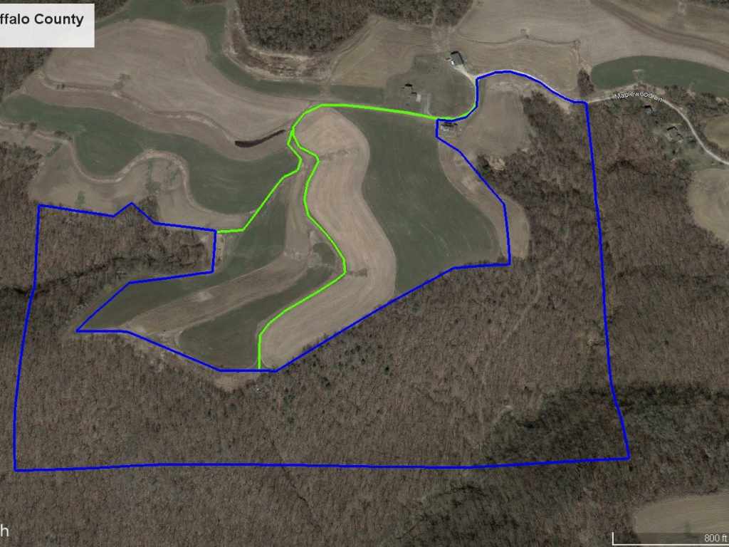 Located on a dead end road in the heart of Buffalo County near Alma, this 55 acre parcel offers excellent hunting opportunities in a neighborhood known for consistently producing big deer! Featuring top access with road frontage and additional easement with multiple access points, this property sets up as a deer hunter's dream. Featuring south facing bluffs with over 300 feet of elevation change make this parcel hunt big! Excellent building site located off dead end road that provides views that need to be seen to be believed. With nearly a mile of field edge providing optimal hunting opportunities with easy access, this is an excellent parcel that will impress the most seasoned hunters.