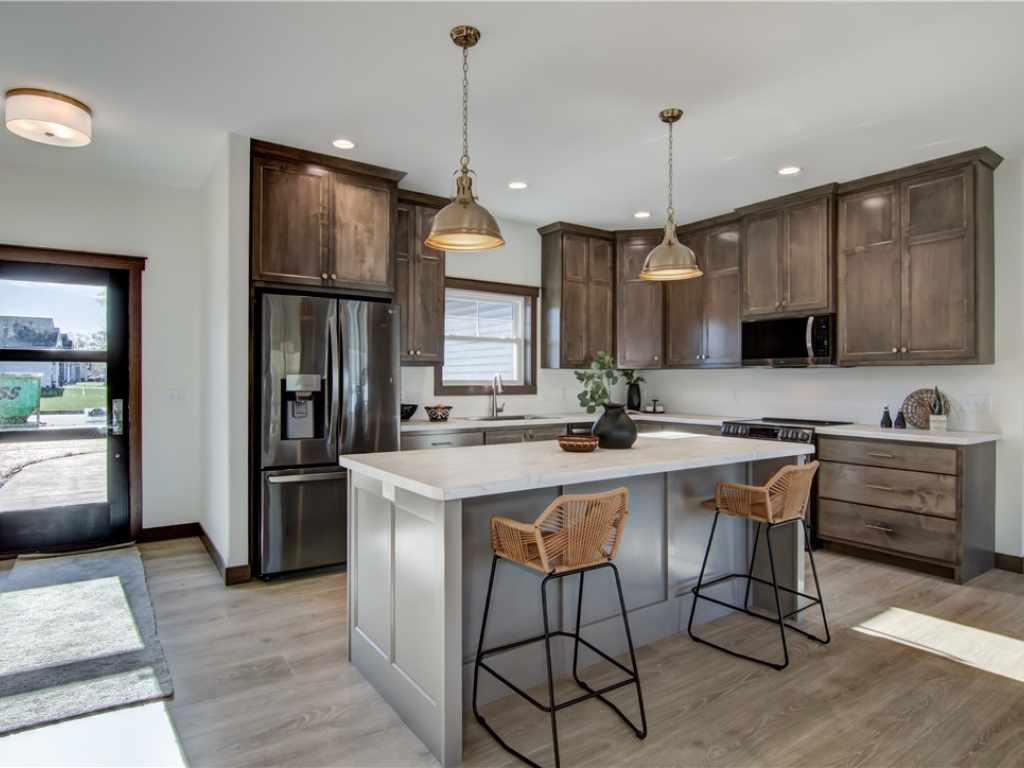 Beautiful split bedroom zero entry home with 3 bedroom and 2 bath home by N&P Properties. Featuring Open concept living with 9ft walls and trayed ceiling in living room and master. Redwing Custom Cabinetry & flooring throughout home includes large kitchen and eat in island, mudroom lockers and bathroom vanities. Master suite w/ spacious walk in closet and duel sinks. Other highlights include large 2 car attached garage, walk out basement and 1st floor laundry. Countertops can be switch out to quartz for $7,500 and backsplash for $1,800. $55,000 to finish basement with 2 bedrooms with walk in closets, bathroom and family room.