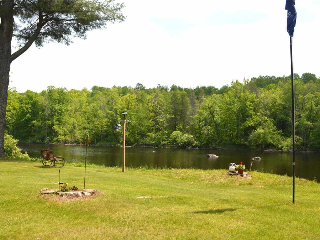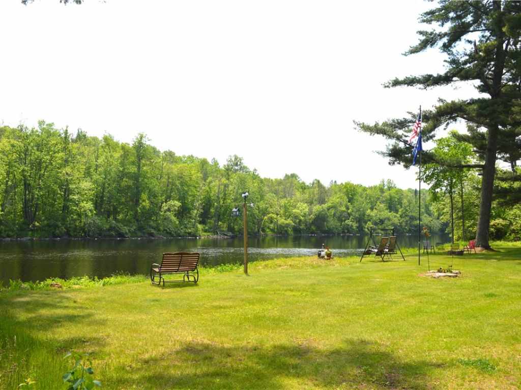 Your beautiful getaway awaits! This 3 bed, 2 bath home offers one level living with zero entry at the front of the home and only a couple of steps on the back deck to the large, open yard. 2 family rooms each with their own fireplace, and a separate dining room, gives plenty of options for hosting. Enjoy the abundant wildlife from the large window in the kitchen, the back deck overlooking the river, or pull up a chair anywhere along the 255 feet of unobstructed river frontage. There is also an oversized 2 car garage with a loft, along with 2 garden sheds, perfect for additional storage. The 1.66 acres is split by the private drive, so the vacant lot with 0.46 acres could be used for an additional garage, guest cabin, or sell it for money back in your pocket! Use this home year-round, your home away from home, or potentially a short term vacation rental. You don't want to miss this!