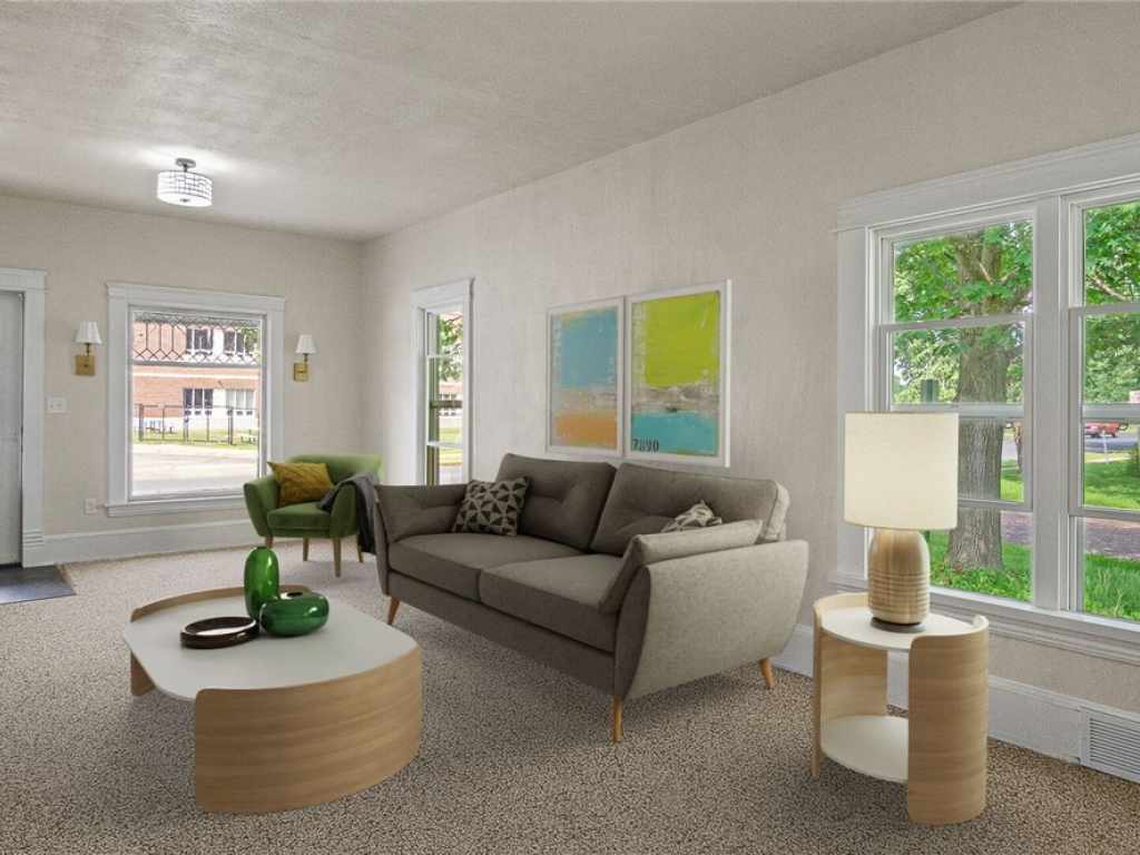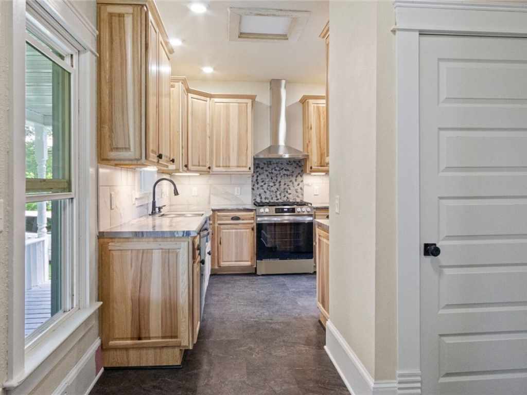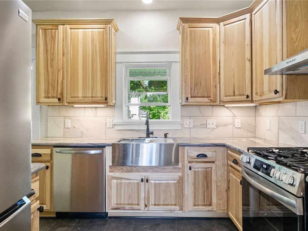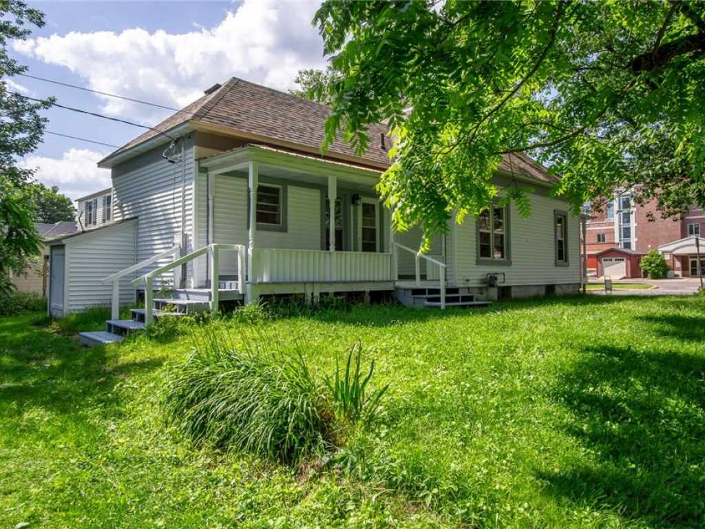 Welcome to this charming and updated 2-bedroom, 1-bathroom home on a spacious corner lot, directly across from Ladysmith Elementary School & close to downtown amenities including shopping, parks, restaurants, & entertainment. Nearly every aspect of the home has been improved, including new flooring, paint, lighting, appliances, countertops, cabinetry, a fully remodeled bathroom, & an electric fireplace. Additional updates include freshly painted decks, newer roof, vinyl siding, exterior doors, water heater, duct work, central air, & more. The 9-foot ceilings create a bright, open feel, the efficient layout is perfect for a small family, couple, or individual. Enjoy coffee or unwind on one of two covered porches. The detached 1-car garage w/ loft space had a new roof installed in 2025. Though currently used for storage and in need of interior repair, the garage offers great potential with a little TLC. This move-in ready home offers modern updates and is a MUST SEE!