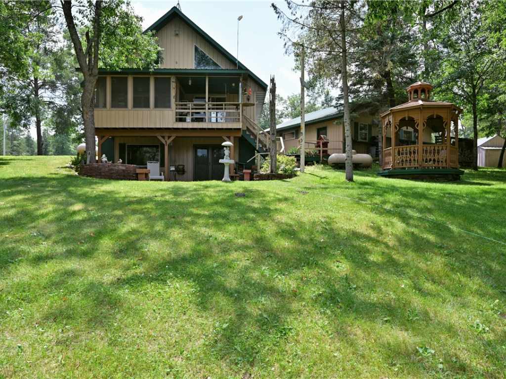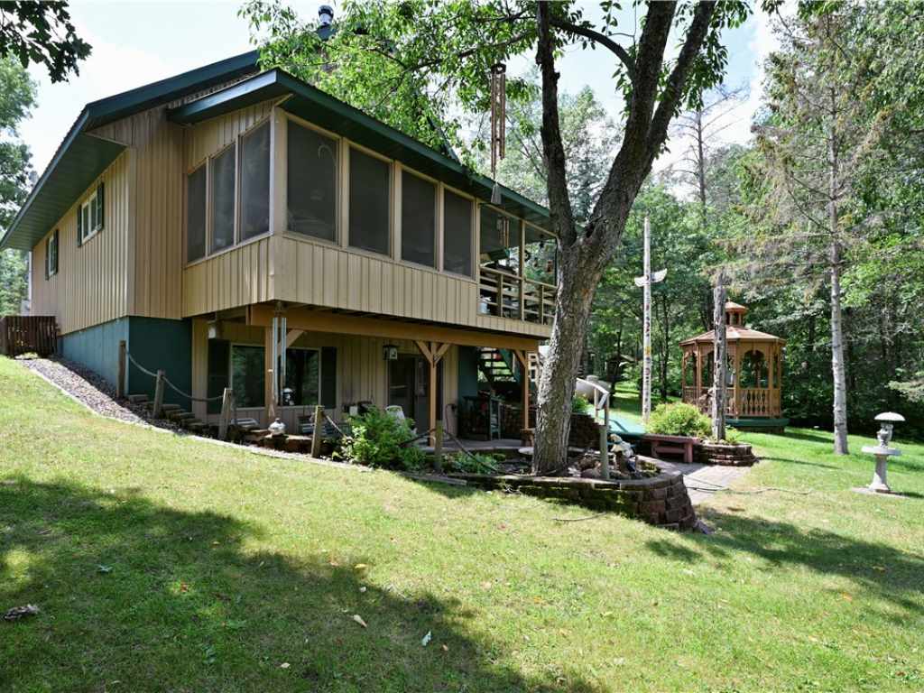 Welcome to your own piece of the Wisconsin Northwoods. Built in 2002, this 3 bed, 2.5 bath home was designed with simplicity and functionality in mind. The vaulted ceilings create an airy, open space in the living room/dining area, where you can also find a cozy wood stove, perfect for fall evenings. Directly attached to the living room are both a covered porch and a 3 Seasons room overlooking the well-kept private yard and surrounding woods filled with wildlife. Enjoy the fully finished walk-out basement, including an additional family room and laundry area. The detached garage is insulated and includes a heated workshop. Other outbuildings include two storage sheds, a gazebo, and a log playhouse lovingly called the "Critter Cabin". With the Minong Flowage and many other lakes nearby, this location is perfect for those looking to check out all the best fishing spots in NW Wisconsin. Whether you're in search of a forever home or a Northwoods getaway, this is a property you NEED to see!