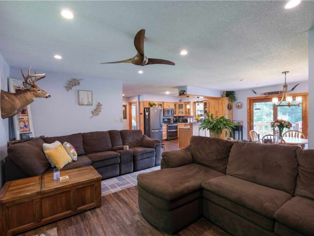 Inside, you’ll find durable luxury vinyl plank flooring, knotty alder cabinetry, and granite countertops that combine style with everyday functionality. The spacious 25x29 attached garage is fully insulated and heated, providing year-round convenience. A substantial 2,560 sq. ft. pole building offers endless possibilities for storage, hobbies, or workspace.