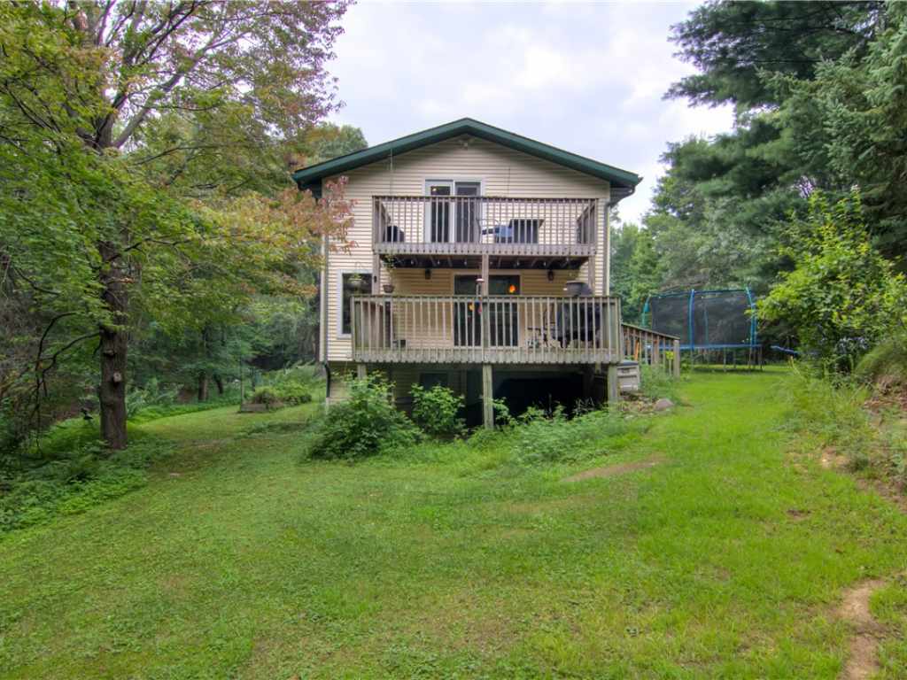 Total privacy awaits! This 3 bedrrom-2 bath home features 9+ wooded acres on a ridge setting. New roof on home & garage 2019, new septic 2018, new water heater 2025. Oversized 2+ car heated and insulated garage, and a additional metal outbuilding. Home features walk-out lower level, 2 private decks, gas heat and central air. A must see property