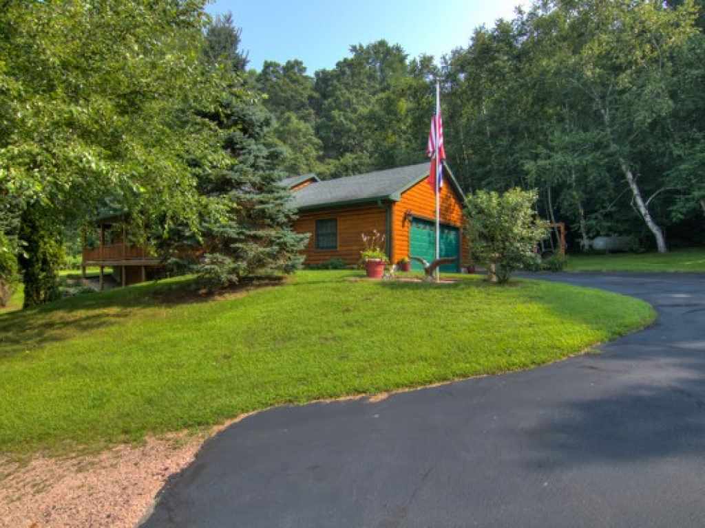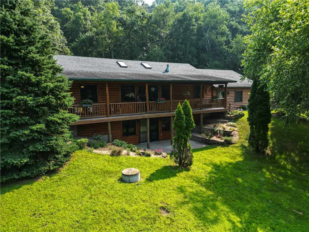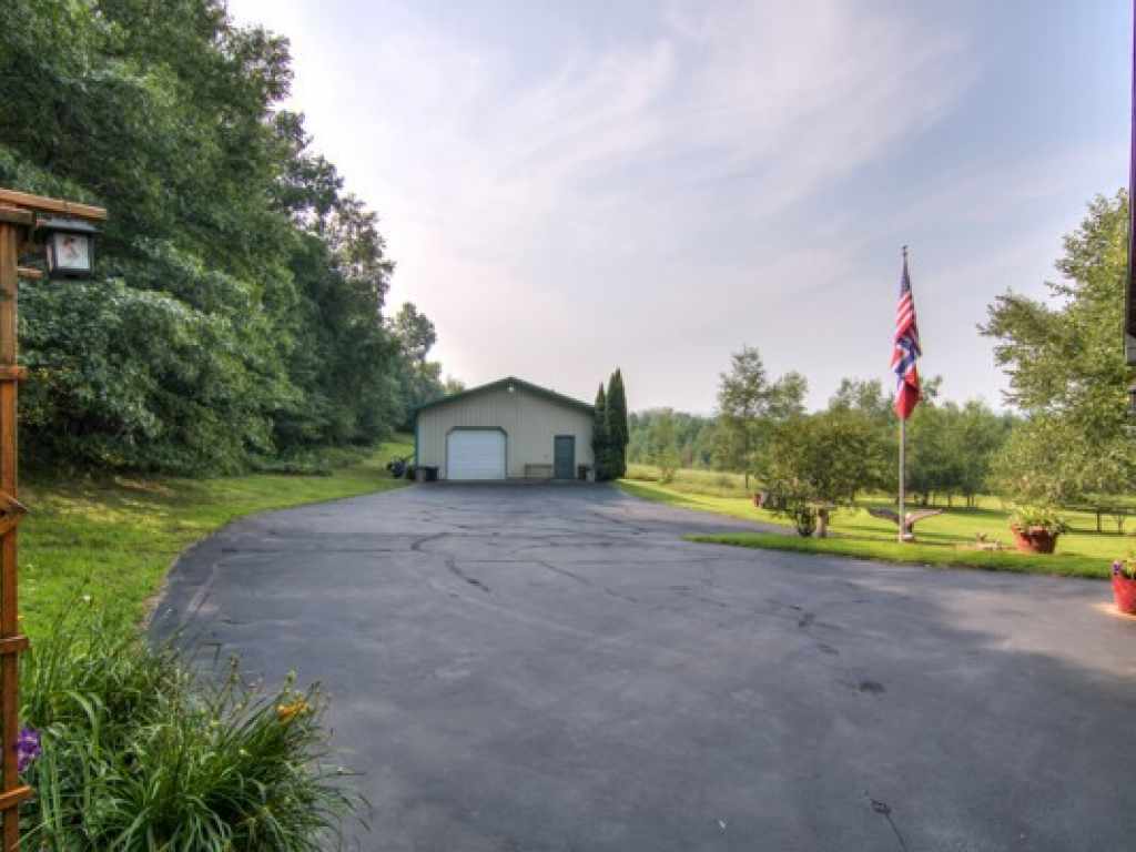 Endless opportunities await—create your dream hobby farm, enjoy prime hunting, start a garden, or simply relax on your own private 15-acre retreat! This private one-owner home has been beautifully maintained and thoughtfully designed. Landscaped yard with multiple spaces to unwind and abundant wildlife including deer, turkey, bear, sandhill cranes, and more. Watch sunsets from the covered front porch or explore the adjoining 40-acre public land parcel. Spacious primary suite with ensuite, generous closets, additional main-level bedroom, and laundry. Open-concept living with gas fireplace flows into a beautiful four-season room. Lower level offers walkout family room, office, and full bath. 28x32 insulated pole shed with concrete floors and wood stove. Screened attached garage for gatherings. Concrete stamped patio/sidewalk added 2023. New furnace and AC prior to closing. Peaceful, private, and ready for your vision—call today for your private showing!