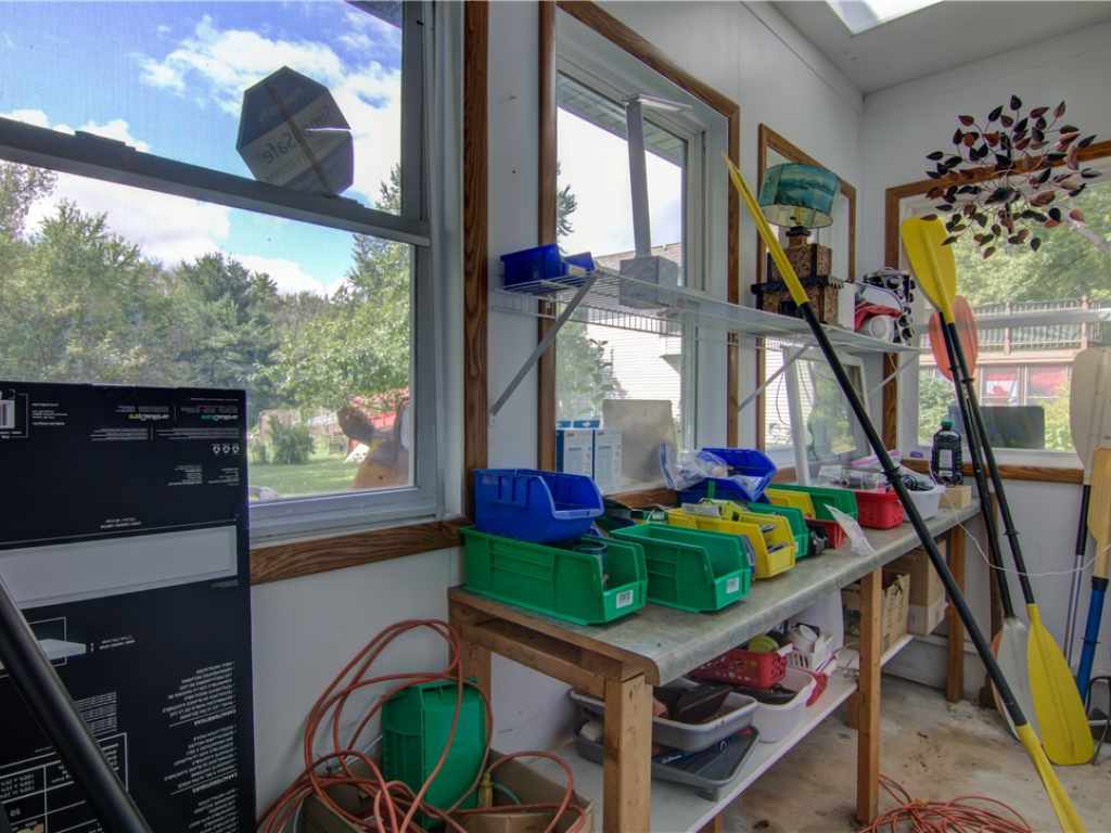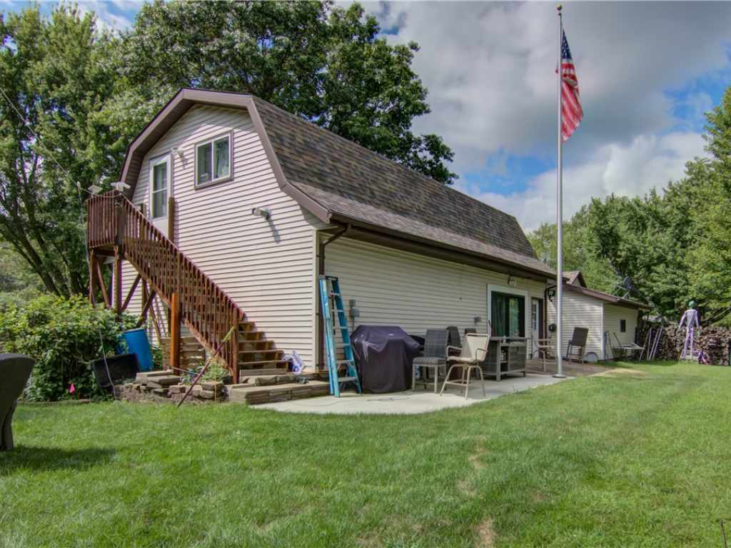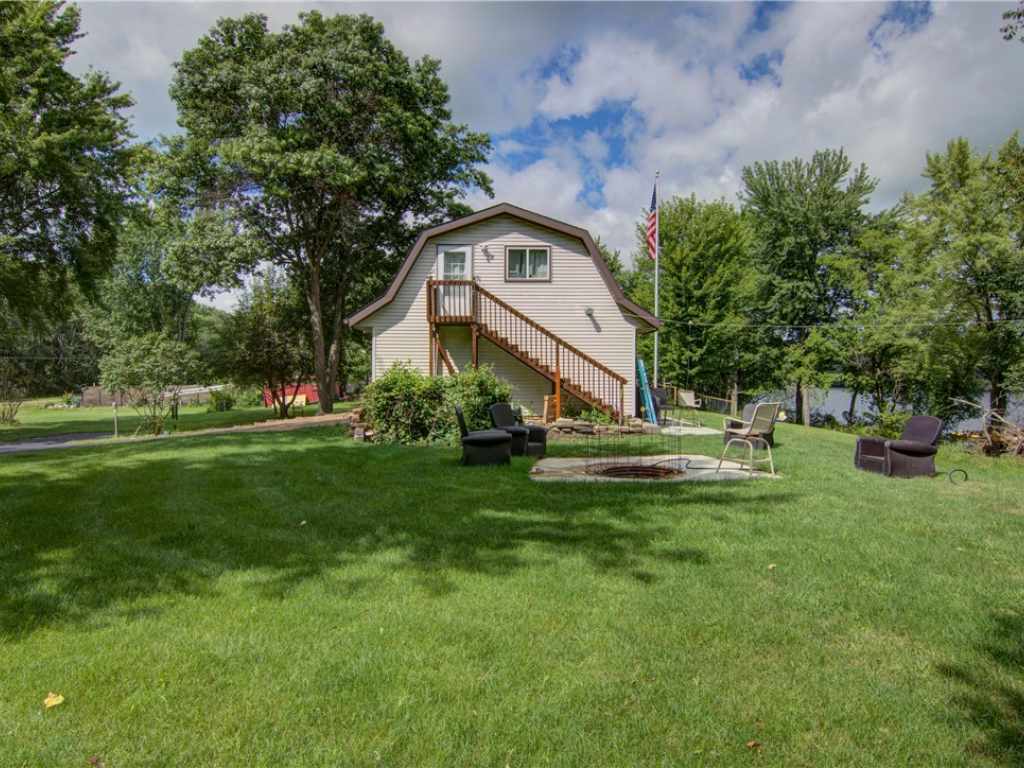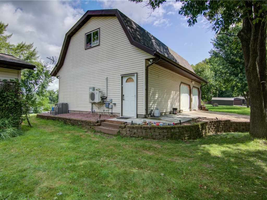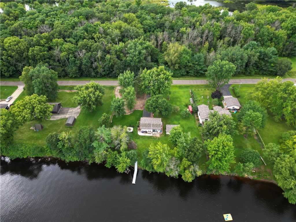 Hard-to-find waterfront property! Two nice storage buildings on 175 feet of low-bank Chippewa River frontage in a very boatable area with direct access to 620-acre Dells Pond. The larger of the two buildings is 36x24 with a spacious loft, two overhead doors, LP forced-air furnace on both levels, plus a high-efficiency mini split for added heat and A/C. Outside you will find a park-like setting with in-ground sprinklers, apple trees, firepit, new landscaping, retaining walls, large parking area, Wi-Fi controlled lighting, and a new $6,000 floating dock included. This property is in the flood plain and currently does not have an occupancy permit but is still a great recreational property to store your toys, grill out and of course use as your home base for boating and fishing on this beautiful stretch of the Chippewa River and Dells Pond. Two bar/restaurants are even navigable by boat. Parcels like this don’t come for sale very often!
