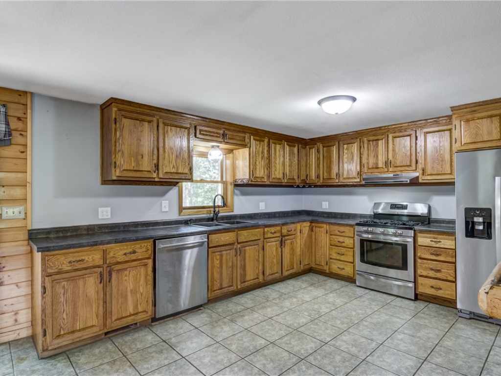 Country living on 37 acres on a dead end road! Open common area. Kitchen has an eat at island, plenty of cabinets, stainless appliances, & a patio door that leads to a composite deck overlooking the property. Owners suite has its own bathroom with walk in tile shower. 1st floor laundry. Walk out lower lever can easily be finished to add more space. 36x45 out building is partially heated and finished. Extremely secluded & private location. Plenty of wildlife. New furnace in 2024. Newer steel roof. Established trails. Spooner Schools.