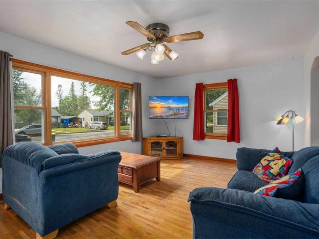 Welcome to this cozy and well-maintained 1-story home, perfectly situated in the heart of Baldwin! Featuring 2 spacious bedrooms and 1 full bath, this home is move-in ready with plenty of potential to grow. Step inside to find beautiful hardwood floors throughout and plenty of natural light from the recently updated front windows. The newer metal roof offers peace of mind for years to come, while the full basement—with an existing egress window—offers the perfect opportunity to add a 3rd bedroom, home office, or rec room to suit your needs. Enjoy the privacy of a fully fenced-in yard, ideal for pets, kids, or entertaining. A large 2-car garage provides ample space for parking and extra storage. Whether you're a first-time buyer, downsizing, or looking for a home with future flexibility, this property has it all. Don't miss your chance to own a solid home in a great location—just minutes from schools, shops, and parks. Schedule your showing today!