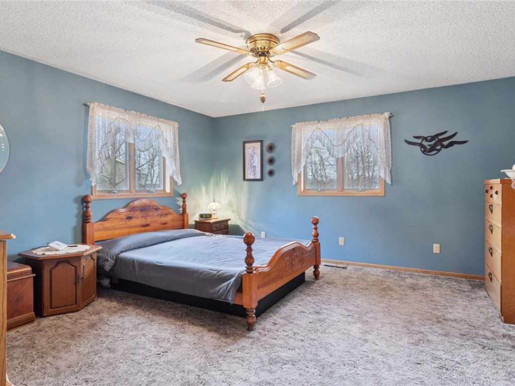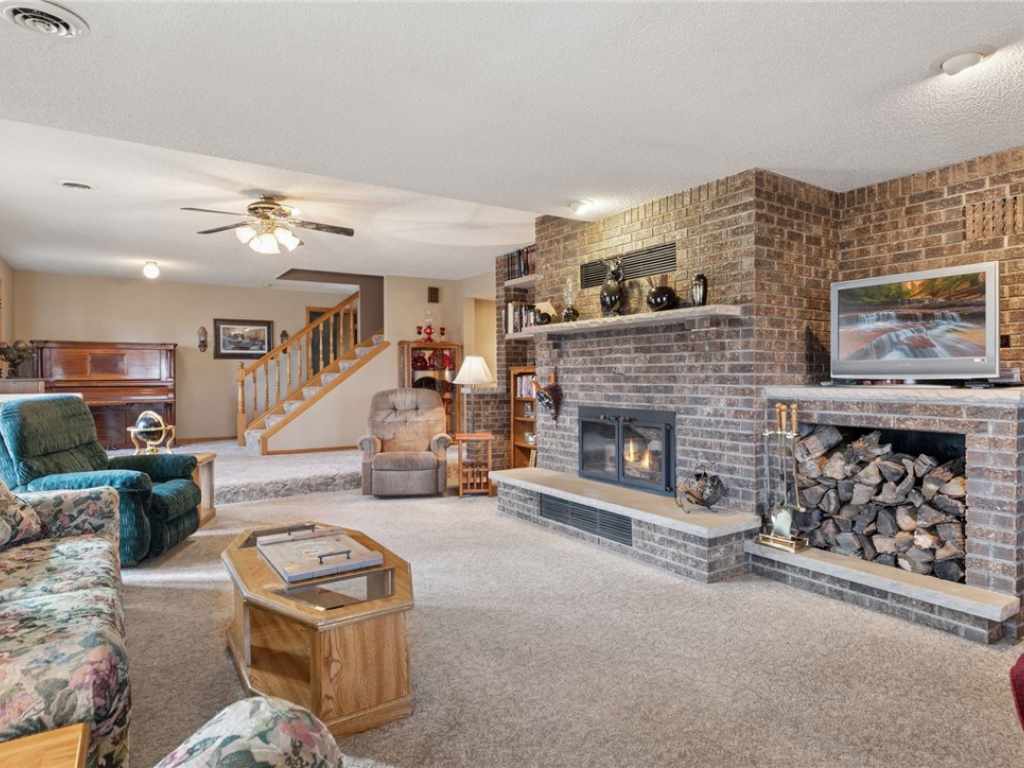 This custom 5BD/3BA brick rambler on over 2 acres (includes adjacent lot) blends charm and function in a peaceful setting. Lovingly maintained by its original owner, it offers 3 main-level bedrooms, including a private primary suite with ensuite bath. Hardwood floors and custom kitchen cabinetry add character and utility. Bright living and dining areas are ideal for entertaining, and the insulated garage offers great storage or workspace. A large deck overlooks a landscaped yard with perennial beds and a pond with fountain. The walkout lower level includes a huge family room with a Wilkening brick fireplace, 2 more bedrooms, a full bath, and a large utility room—perfect for guests or hobbies. Enjoy indoor-outdoor living in comfort and privacy.