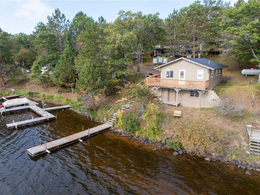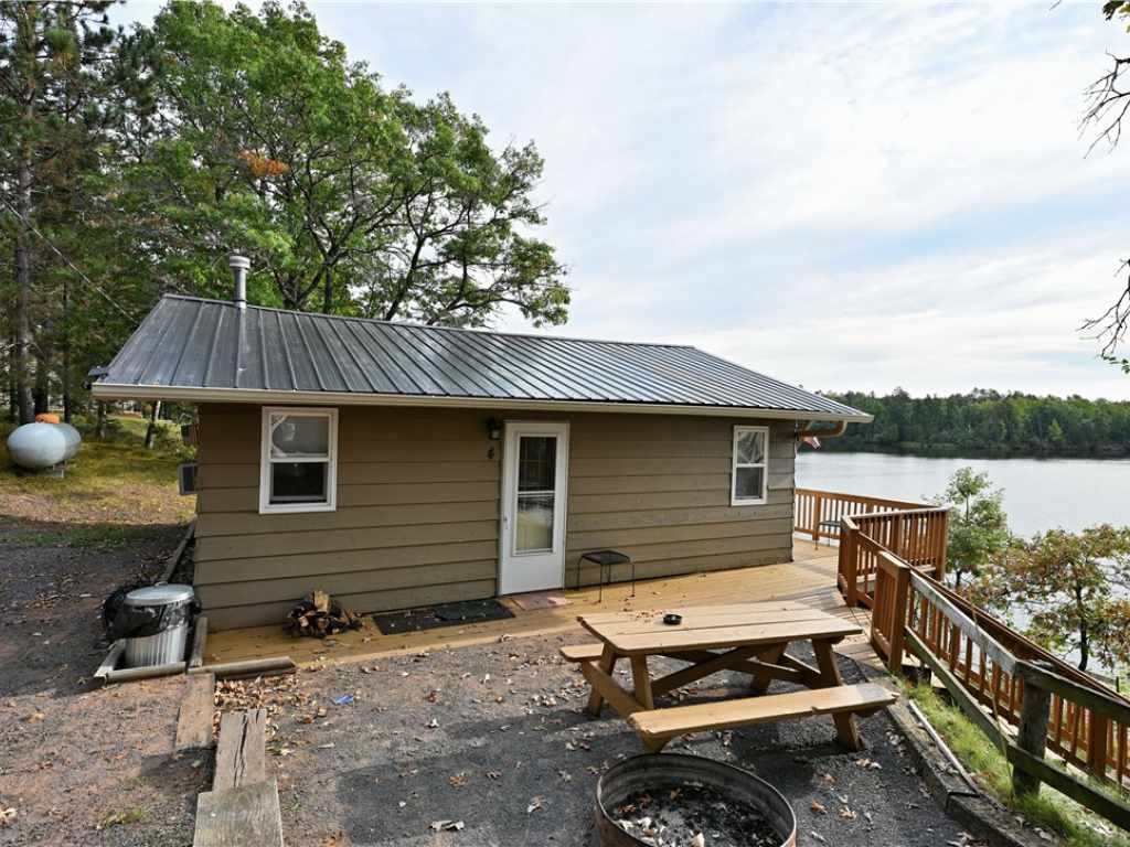 Finding a cabin on the highly sought-after Minong Flowage just got easier. Enjoy the carefree lake life with this 2 bedroom stand alone condo cabin situated as close to the lake as you can possibly get without getting wet. Lawn care, snow removal, garbage, and maintenance of common areas is included with your low monthly association fee. Main level features 2 bedrooms, combined kitchen/dining/living room area and 3/4 bathroom. This is turn key with all furnishings included. The lower level is accessible from the lakeside and would be perfect for storing your water toys or other possibilities. Also includes a dock slip. The waterfront view is beautiful from this cabin with a deck facing lakeside, and just a few steps to get the level 350' of shared shoreline to swim. The sunrises will be fantastic here with Eastern views. Enjoy your own outdoor seating area with firepit for cozy nights by the fire. The year round rec trails are easy to access for UTV and Snowmobiling fun.