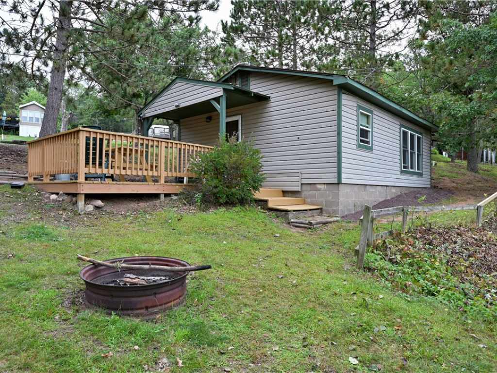 Finding a cabin on the highly sought-after Minong Flowage just got easier. Enjoy the carefree lake life with this cute 2 bedroom stand alone condo cabin situated directly on the shared, 350 feet of prime, level lakeshore. Lawn care, snow removal, garbage, and maintenance of common areas is included with your low monthly association fee. This single level cabin features 2 bedrooms, combined kitchen/dining/living room area and 3/4 bathroom. This is turn key with all furnishings included. Also includes a dock slip. Enjoy the 12 x 17 wood deck with great views of the lake and only a few steps to the waters edge from cabin. The sunrises will be fantastic here with Easterly views. The year round recreational trails are easy to access for UTV and Snowmobiling fun. This is a wonderful, feasible opportunity to get on the Minong Flowage!