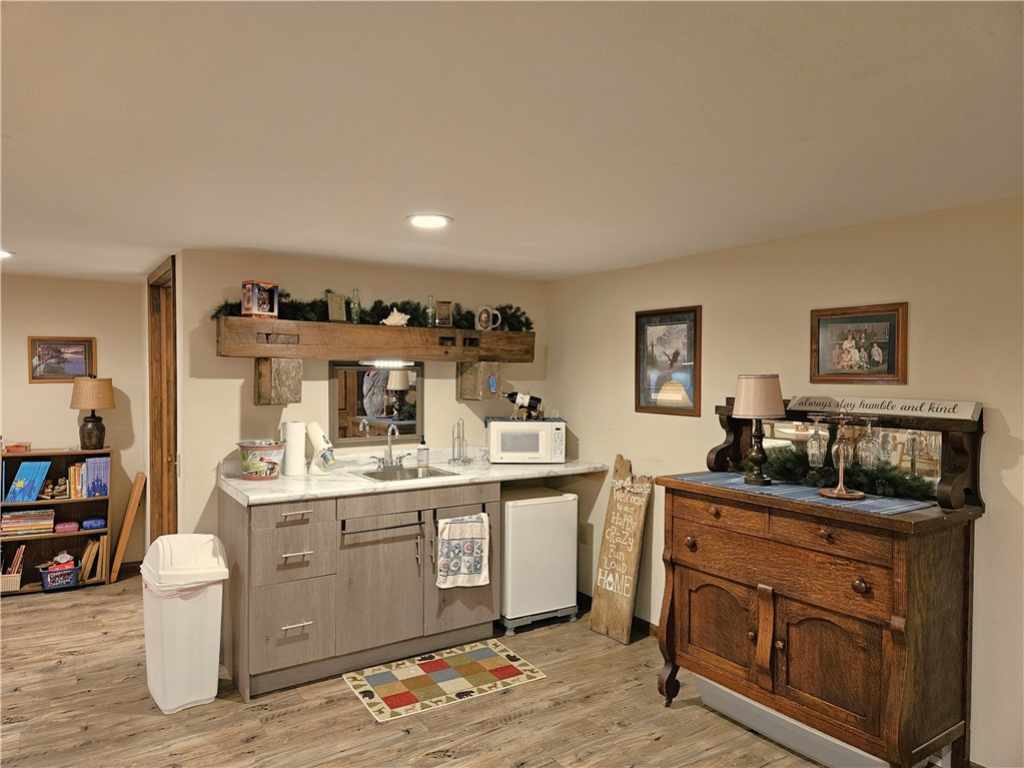 This hard-to-find property consists of a beautiful 3 bed, 3 bath home with a very nice attached 2-bedroom 1 bath apartment that offers endless possibilities! The apartment has its own separate entrance allowing the option to be rented; to be used by family or it could be made part of the main house if desired. All of this situated on a 1.58-acre lot in a highly desirable location, just north of the Rice Lake city limits yet a mere 2-minute drive to all of its conveniences. While the main floor has everything you need, the lower level provides additional recreation/living area with a beautiful family room that includes an electric fireplace, wet bar & restroom for entertaining friends & family. Some of the recent updates include the following; New furnace & A/C in 2022, new walk in shower in 2020, Family room addition in 2017, New roof in 2023 & Seamless gutters in 2024. (Total of 5 bedrooms 4 bathrooms)