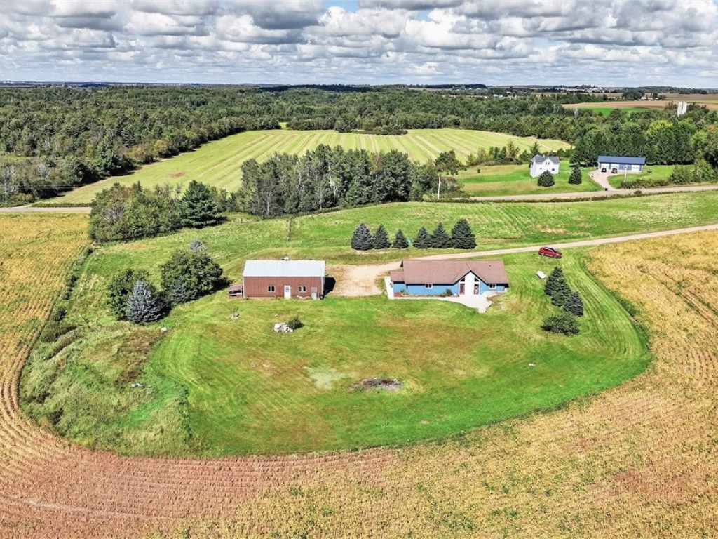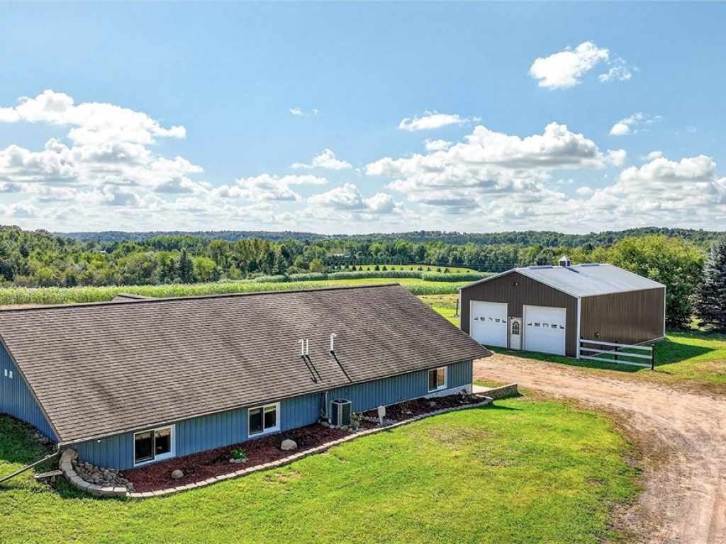 Discover peaceful country living in this 3-bedroom, 2-bath slab-on-grade home. Designed with comfort in mind, it features in-floor heat to keep you warm through the winter and large windows that showcase breathtaking views over open farm fields. For horse enthusiasts, the property offers three paddocks with pasture, providing a great setup for your animals. A 30x45 pole shed/garage adds plenty of storage for vehicles, equipment, or hobbies. This property blends comfort, function, and a peaceful setting, making it an excellent choice for those looking to enjoy country living with modern convenience. Seller is a WI licensed real estate agent.