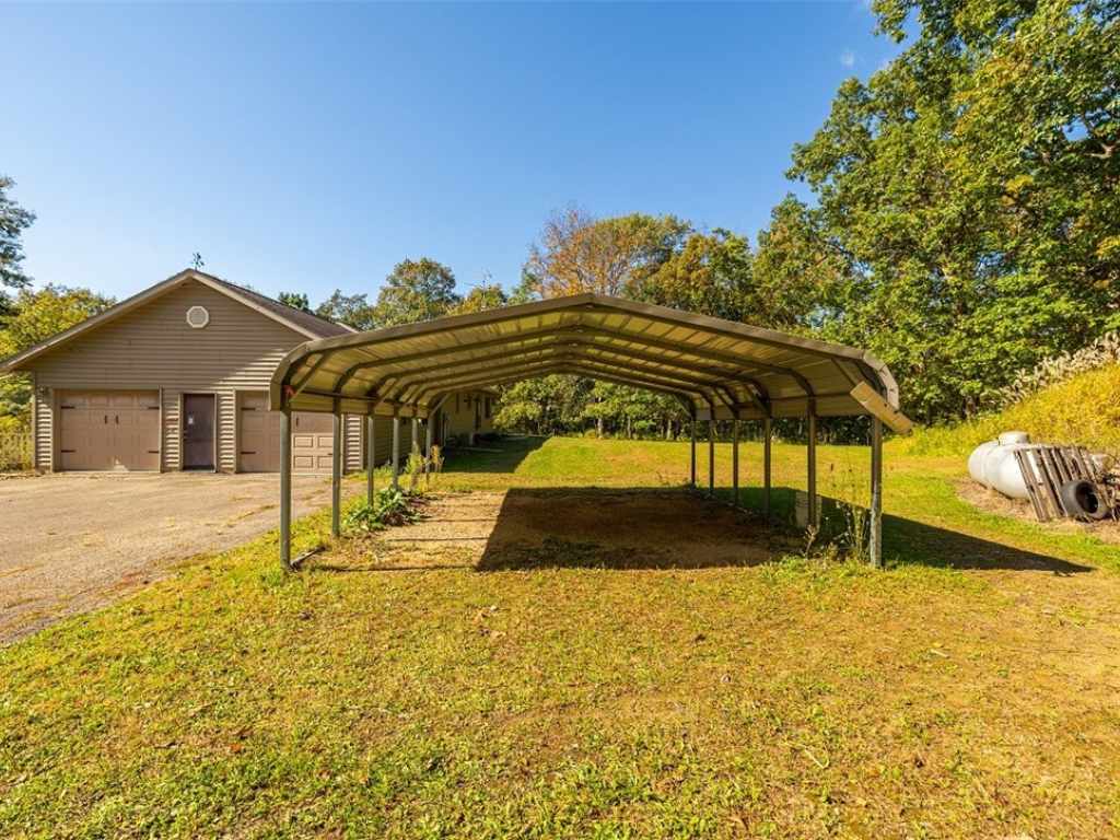Located in the bluffs of Buffalo County, this home on 12 acres is the epitome of country living in one of the most magical places in the Midwest. The views of the bluff country need to be seen to be appreciated, along with excellent hunting opportunities out your back door! Home features 2 bedrooms on the main level, a welcoming living and dining room with open concept featuring a gas log fireplace as the focal point of the living room. Large master bedroom with walk in closet and master bath with jacuzzi tub. Home features an unfinished basement with plumbing for a 3rd bathroom and plenty of room for additional bedrooms. An attached garage is perfect for cars, and a detached shed can be used for storing toys and equipment. Acreage features mostly wooded hillside that is a natural pinch point between 2 large ridge systems. Located in one of the best neighborhoods in Buffalo County, this is an excellent option to live in the country and enjoy the outdoors everyday!