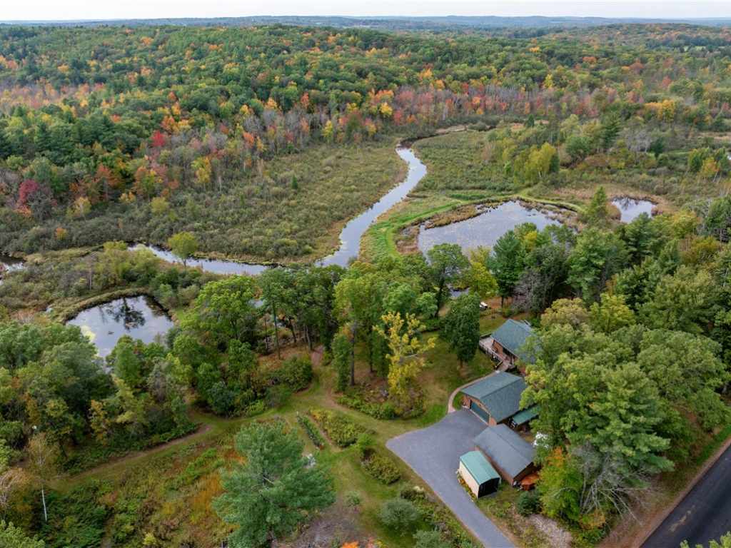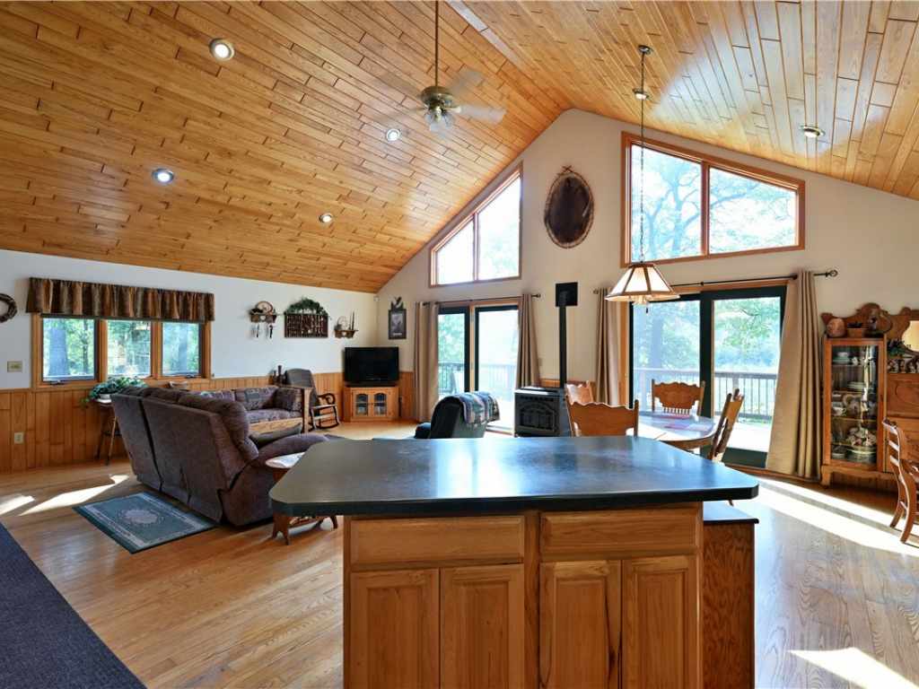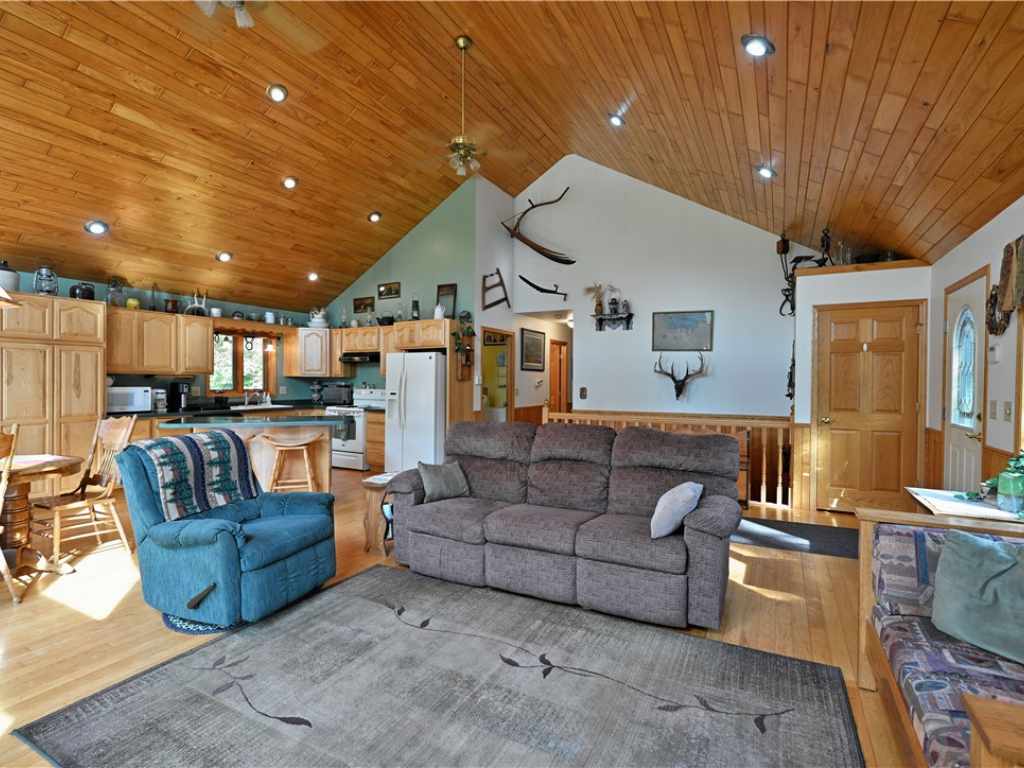 Set on nearly 20 acres of tranquility and privacy, this 2 bedroom, 2 bath chalet-style home offers modern comfort in a beautiful natural setting. The open-concept layout features vaulted ceilings, warm wood floors, and custom kitchen cabinets, creating a light-filled and inviting space for everyday living or entertaining. All main-floor living makes for easy convenience, while the expansive unfinished basement—already stubbed for a bath with three egress windows—offers excellent potential for future living space. Enjoy year-round efficiency with a pellet stove, wood stove, propane heat, and newer mechanicals including furnace, hot water heater, and roof. Step outside to take in the panoramic views from the expansive wraparound deck, the perfect spot to relax and watch the seasons change. Outdoor enthusiasts will appreciate the extensive trail system, abundant wildlife, and hunting opportunities with multiple deer stands and excellent duck hunting. The land also features fruit trees, raspberries, rhubarb, blueberries, and a large fenced garden along with natural prairie for low-maintenance beauty. Two detached garages provide outstanding storage—one is heated, insulated, and equipped with a floor drain, ideal for year-round use. With its modern amenities, thoughtful design, and serene setting, this property offers both comfort and adventure in one. 3D TOUR: https://www.zillow.com/view-imx/34891a44-2ff8-43da-8c39-9159f7ee1fab?set Attribution=mls&wl=true&initial View Type=pano&utm_source=dashboard