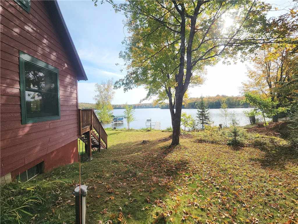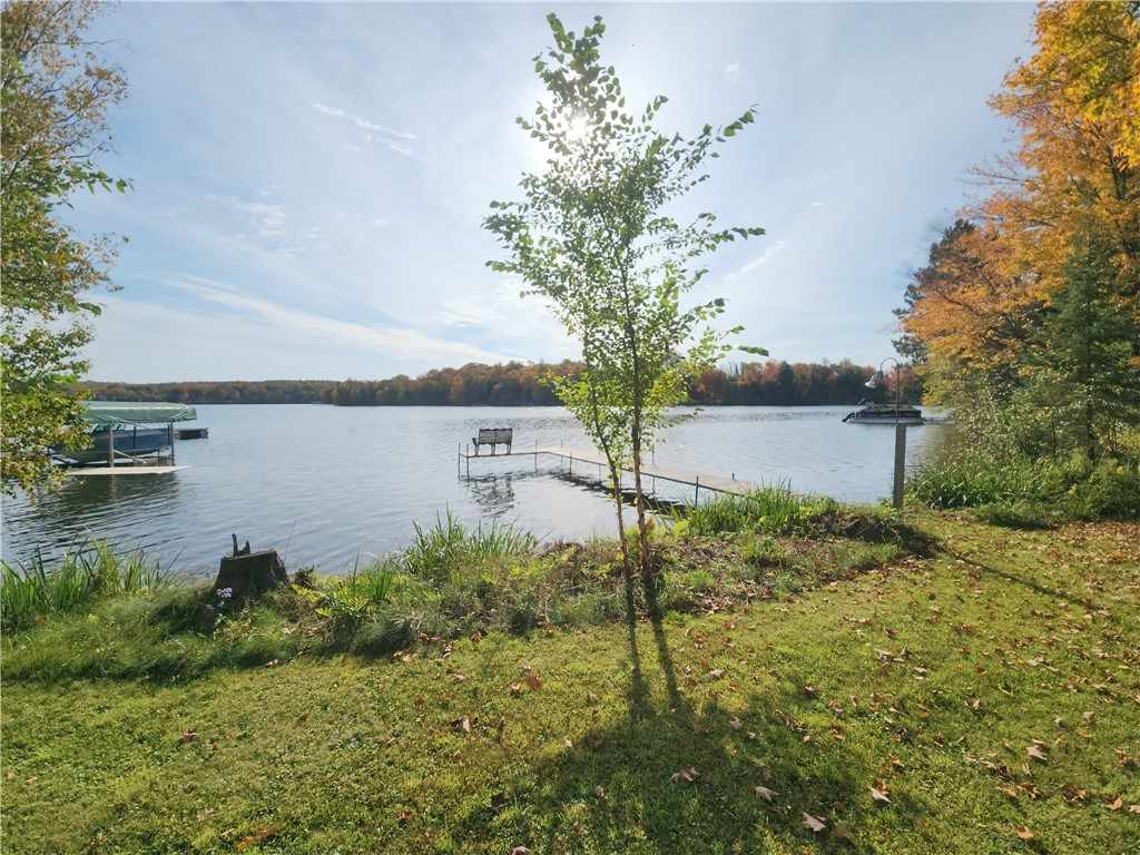 You just found it!! This super-charming, nostalgic lake cabin is on a level lot, with sugar sand swimming on a gin-clear lake! This 4-season home or cabin has 3 levels of living space, with plenty of room to bunk the troops. It offers togetherness and separation when you need it. The main floor has two bedrooms and a full bathroom. The upstairs loft is comforting and cozy, with a bedroom, a separate open sleeping area, and a 3/4 bathroom. The lower level has a large family room, laundry room with mechanicals, and a storage room - and it's a walkout basement! All appliances and furnishings are included, and also the dock. There is a 2-car garage with brand new siding, doors and metal roof. Atkins Lake is 170 acres, 80 feet deep and offers good fishing for panfish, smallmouth bass, northern pike, walleye and trout! The property is 1.2 acres, half of it on the lake side of the road and half of it across the road. High speed fiber optics serves the area. There are several updates done & the cabin will have the 4' x 5' lower level lakeside windows replaced prior to closing.