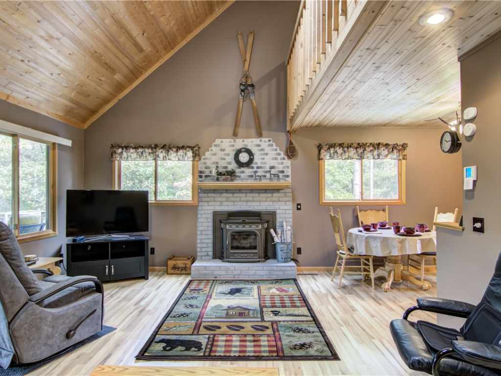 Step inside and be welcomed by a bright, open layout designed for effortless entertaining and cozy evenings. The main level features a spacious living room with a charming woodburning fireplace, a generous primary bedroom with direct access to a four-season porch and deck, and a modern tiled bathroom with a walk-in shower. Revel in panoramic lake views year-round from not one, but two four-season porches—ideal spots for your morning coffee or evening wine.