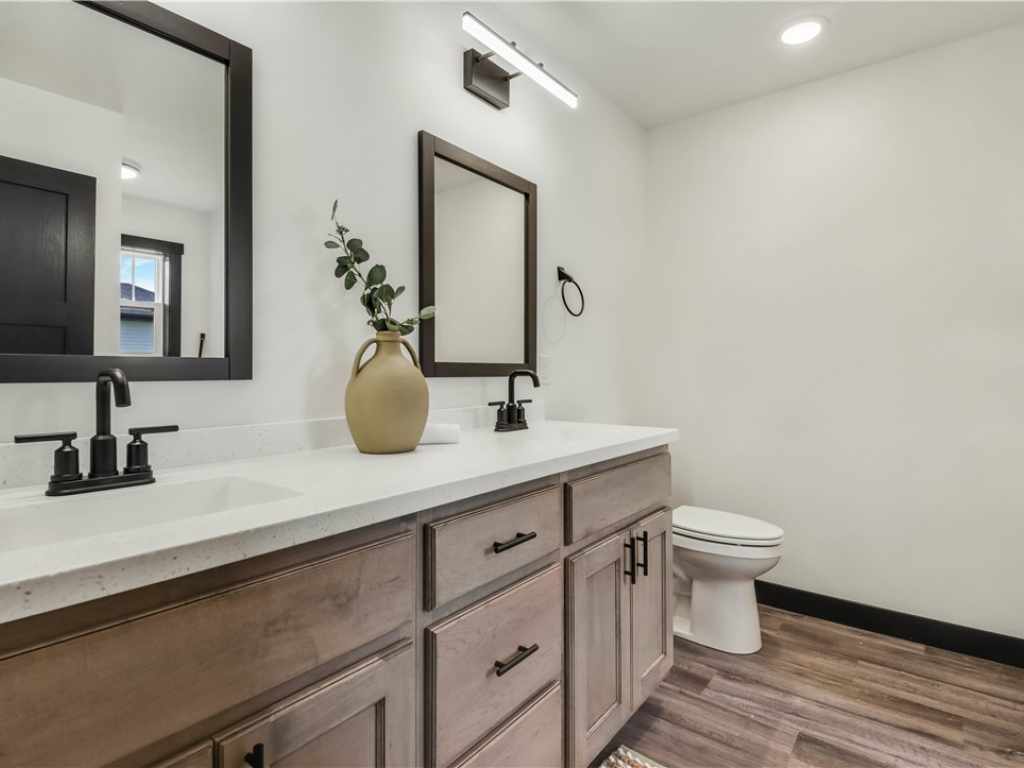 The kitchen steals the show with solid-surface counters, tons of prep space, and a layout any home chef will love. Main-level perks include a mudroom, laundry + half bath combo, a private primary suite, and a Jack-and-Jill bath connecting the two additional bedrooms. Natural light floods through oversized windows, highlighting the custom cabinetry and quality finishes throughout.