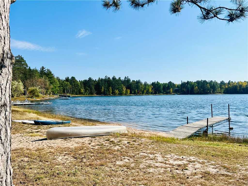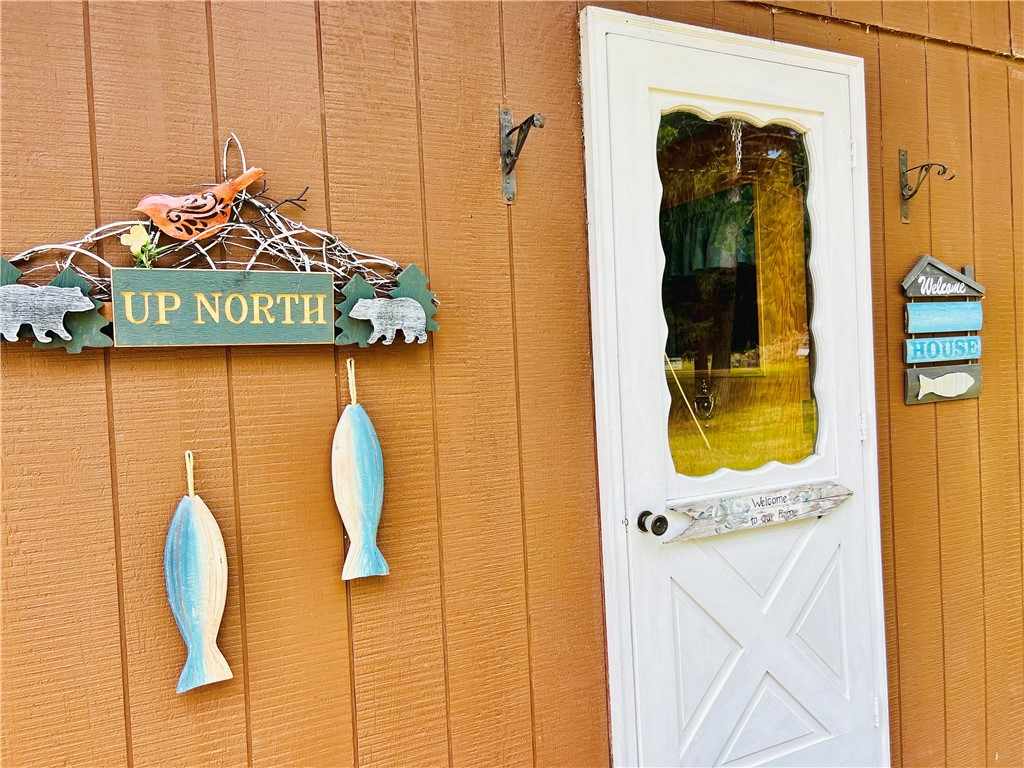 The home also includes newer flooring, fresh paint, a washer, and newer dryer, a newer furnace, air conditioner, and newer water heater. The dining room includes a dining table and chairs with Cathedral ceilings. The front of the living room, facing the lake, is wall to-wall sliding patio doors with piano and built in bookcase. Kitchen area features dishwasher, expandable table and chairs, open kitchen with custom built-in cabinets, pantry cabinet, large living room windows overlooking the lake. Beside the home, there are three other outbuildings including a storage unit for outdoor equipment, outhouse, a boat house, full two-car garage with wrap around work bench, additional sleeping area for at least six guests, and an entertainment area with a ping-pong table and an air conditioning unit. There's plenty of room for outdoor games like volleyball, badminton, and corn hole. Rec Trails near the property. In the past, there have fruit and vegetable gardens, as well as an open cement-poured patio area for grilling near the house.