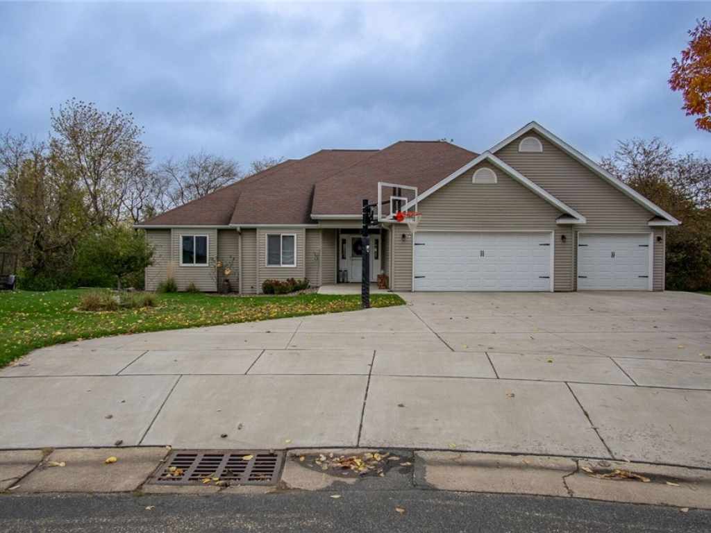 Beautiful Walkout Ranch on Quiet Cul-de-Sac! Welcome home to this spacious 4BR, 3BA ranch tucked away on a quiet cul-de-sac in a convenient West side neighborhood-just minutes from schools, parks, and shopping. Enjoy an open floor plan with vaulted ceilings, featuring a see-through gas fireplace, and a large kitchen with an eat-in island that’s perfect for gatherings. The main level features a primary suite with his-and-hers vanities, a second bedroom, office, and a cozy sunroom overlooking your private .49-acre lot. Step outside to a maintenance-free composite deck, ideal for cookouts, relaxing or watching the kids play. The bright walkout lower level offers extra room for everyone with two bedrooms, a full bath, a spacious family room, and ample storage. The 3-car garage provides space for cars, bikes, and all your gear.