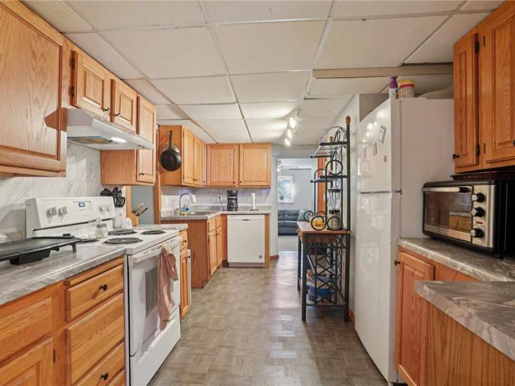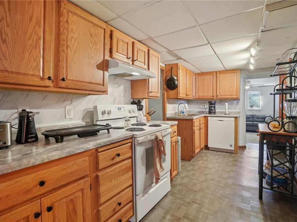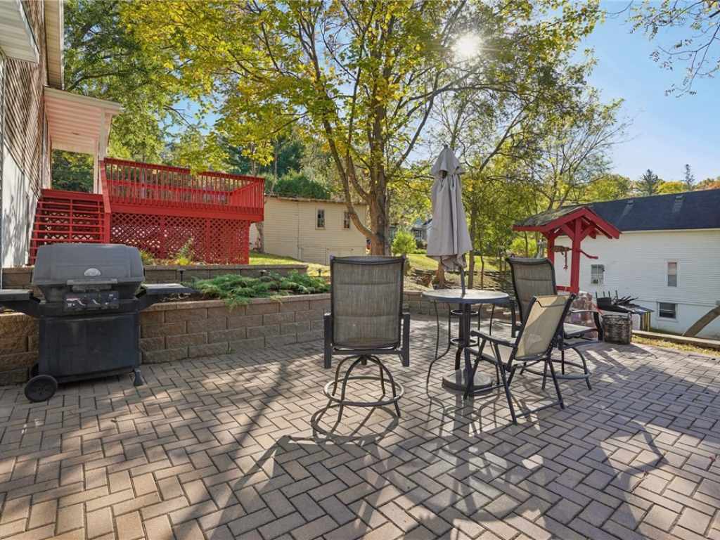 This well-maintained St. Croix Falls home offers space, updates, and versatility! Featuring 4+ bedrooms, large updated windows, newer siding and roof, and fresh flooring throughout. The main level includes a remodeled bath, convenient laundry, and spacious rooms filled with natural light. Step outside to a beautiful paver patio surrounded by mature trees on nearly a half-acre lot. The lower level hosts a complete mother-in-law suite with its own kitchen, bath, and laundry—perfect for extended family. The rear alley access offers room to add a future garage. Move-in ready and close to schools, parks, and downtown amenities!