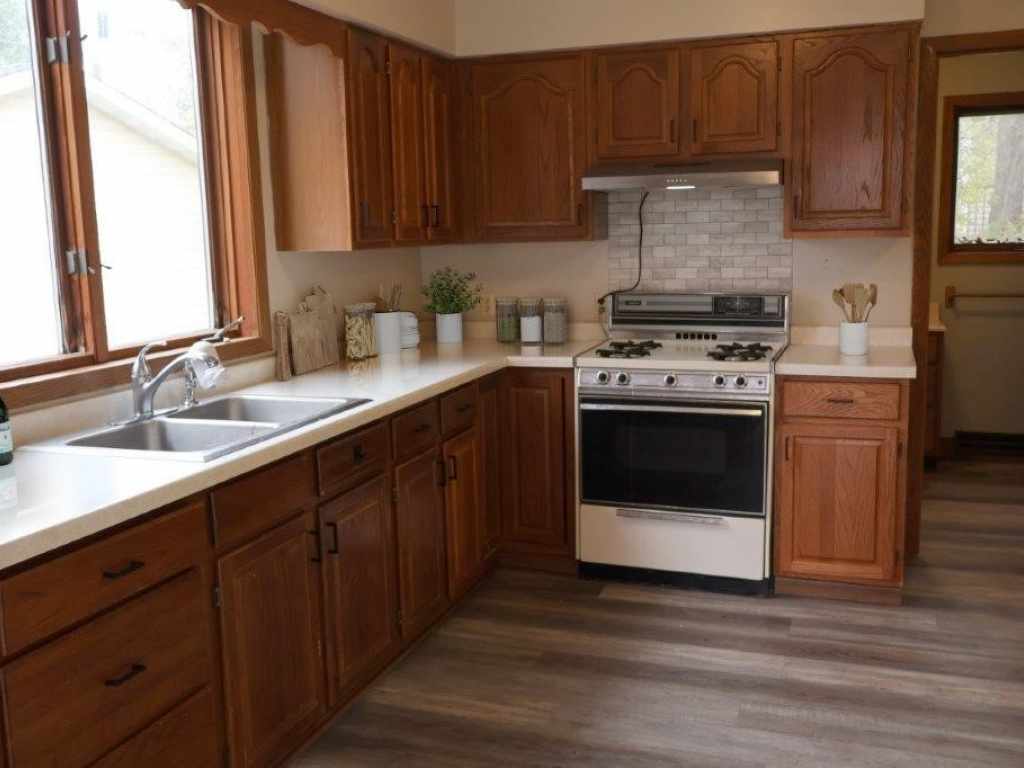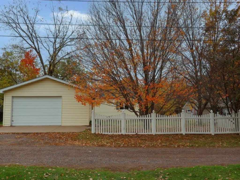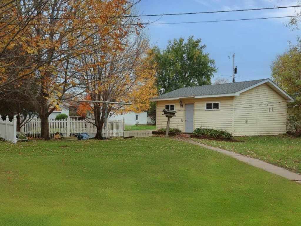 This 2BD 2BA ranch-style home features single-level living with an open layout. Comfortable spaces and practical design elements throughout, creates a welcoming atmosphere. Spacious eat-in kitchen with oak cabinets and large living room. Primary bedroom includes private bath and main floor laundry adds everyday convenience. An enclosed front porch with knotty pine walls extends the living space and offers a great space to relax and wind down. Level yard creates an excellent outdoor space that's both functional and easy to maintain. Maintenance-free vinyl siding and architectural shingles for lasting durability. 20x24 detached garage provides generous storage and workspace possibilities, and street and alley access enhance accessibility. City sewer and water connections provide reliable utilities. Located in Ladysmith with easy access to downtown amenities an US Hwy 8 for an easy commute.