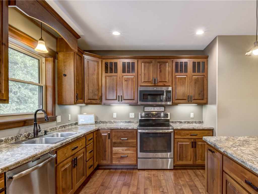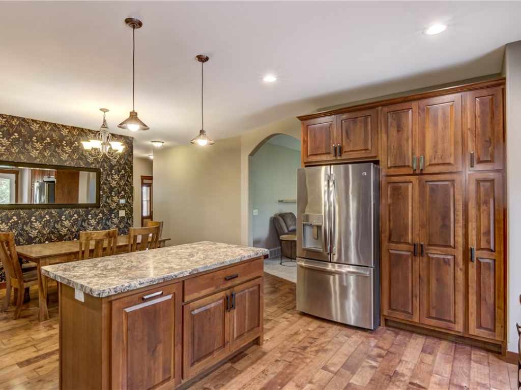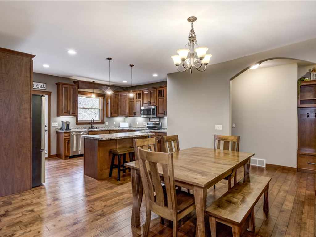 Very well maintained Westside ranch! Spacious kitchen has beautiful custom rustic cherry cabinets, stainless appliances, eat at island, & pantry cabinet. Owners suite has a tray ceiling, full bathroom, & a walk in closet. Mudroom locker/bench. 1st floor laundry room with cabinets. Walk out lower level is full of windows & natural light & is ready to be finished. Could add 2 more bedrooms, family room, & bathroom. 3 panel wood doors. 9 ft ceilings. Covered entryway. Enjoy the private wooded back yard on the deck or on the colored & stamped concrete patio. 3 car garage is insulated, sheeted, & has an extra deep 3rd stall.