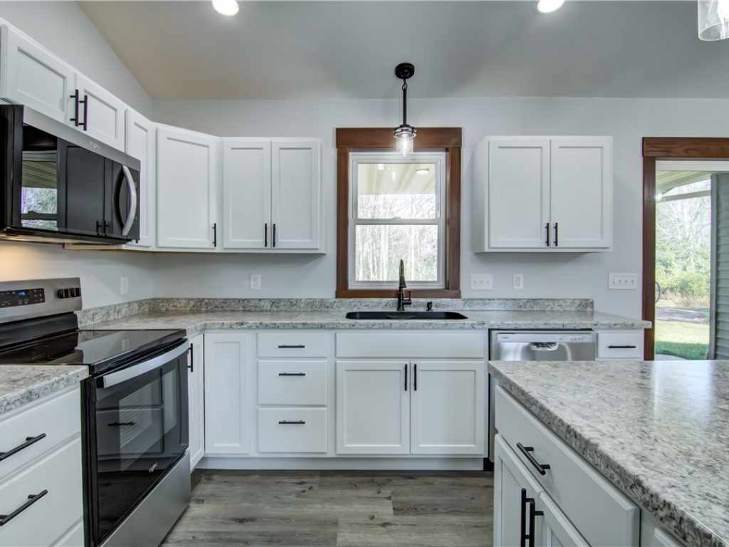 Come check out this newly finished zero-entry 3 bed, 2 bath ranch home tucked away on a 1.58 wooded lot just outside Cadott. The home features vaulted ceilings in the living room, dining area, and kitchen. The master suite offers tray ceilings, dual sinks, a walk-in shower, and a walk-in closet. Wide 36-inch doorways throughout provide easy accessibility for everyone. You will enjoy the peaceful views from the covered front and back porch, surrounded by mature trees. The home includes a large 24x34 heated garage that is fully finished. Easy access to the freeway makes it an easy commute to work or vacations. Come check it out!