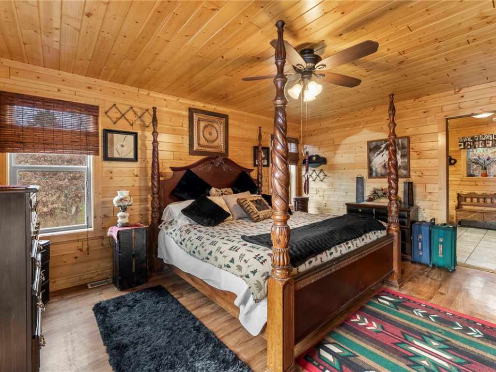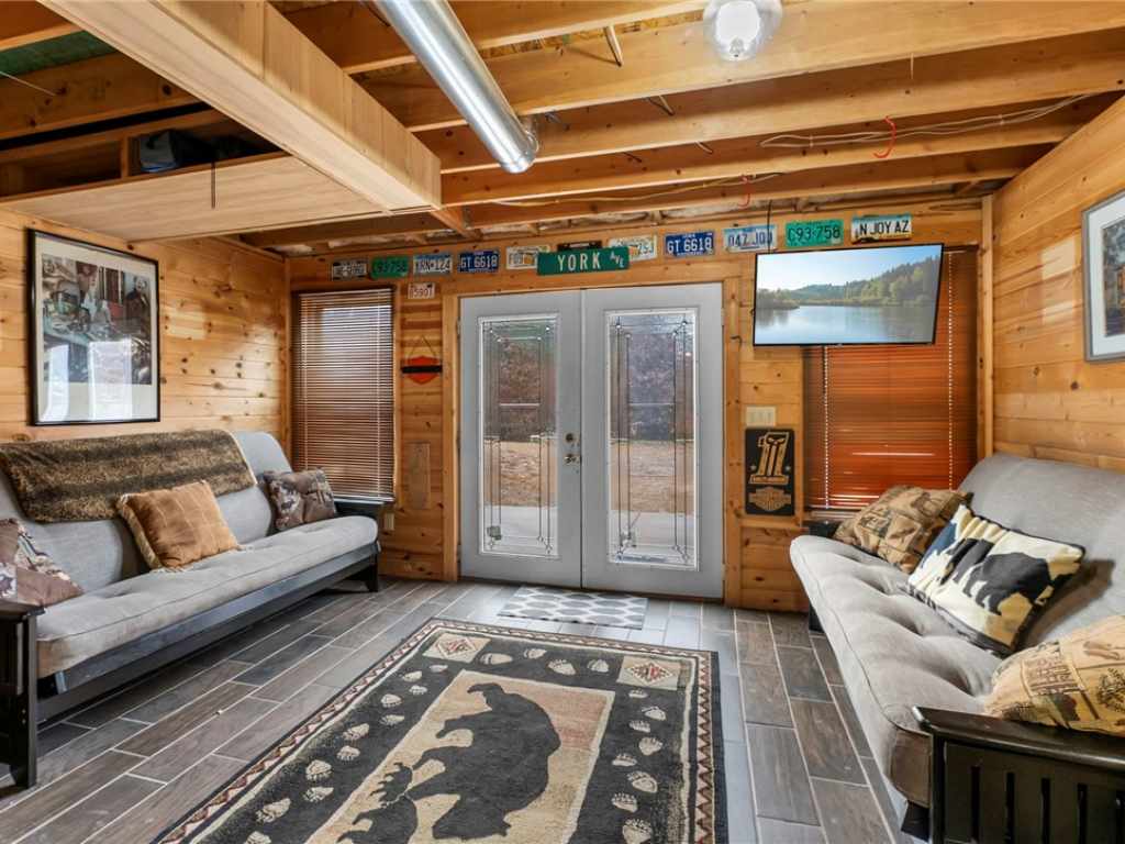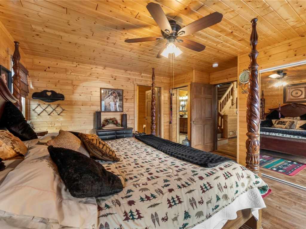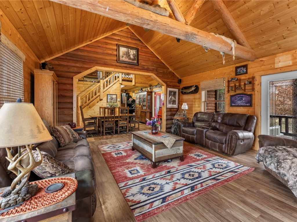 Custom-built private retreat 3BR/3BA home on 8.21 wooded acres, offered for the first time! Surrounded by over 100 acres of conservancy land open to public hunting and hiking. The main level features an open layout with vaulted wood ceilings, custom cabinetry, a clawfoot tub, and a beautiful stone wood-burning fireplace. Spacious primary suite with private bath and deck access. LL walkout includes a rec room with bar area—perfect for guests or entertaining. Enjoy peaceful views from the covered porch overlooking the spring-fed pond and watch deer cross your driveway. Addl highlights: 20x40 pole building, 2 sheds (both w/power, one w/water), and ATV/snowmobile trail access within 1 mile. In-town amenities include Parduns Canoe Rental and side-by-side rentals for exploring the scenic St. Croix River. Minutes from area lakes, dining, and recreation—an ideal year-round home or weekend getaway offering unmatched privacy, comfort & Northwoods charm!