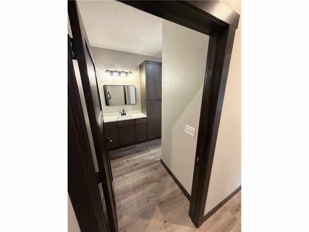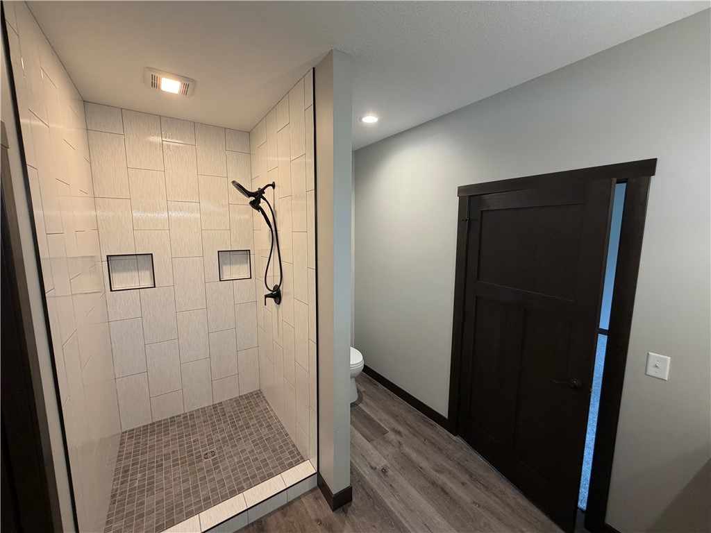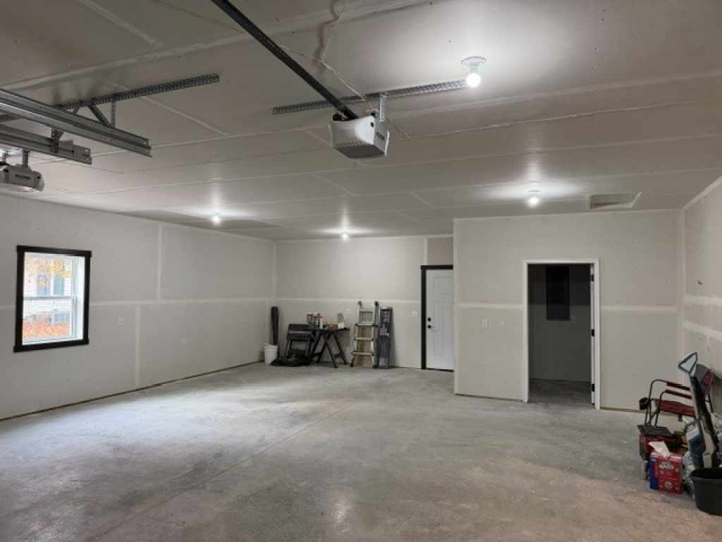 This quality-built slab-on-grade home offers 1,656 sq ft of single-level living with 3 bedrooms, 2 bathrooms, and an oversized 936 sq ft 2-car garage. The open-concept layout features 9 ft ceilings, luxury LVP flooring, solid wood doors, and custom trim throughout. The kitchen includes quartz countertops, an island, custom cabinetry, and stainless steel appliances. The private primary suite offers a walk-in closet and a spacious bath with double vanity and custom tile walk-in shower. Additional features include a large laundry/mud room, spray foam insulation with blown-in attic, forced air heating (in-floor heat plumbing ready—boiler optional), and energy-efficient construction. Exterior highlights include vinyl siding, cedar-wrapped posts, covered front porch, poured concrete back patio, paved driveway, and completed landscaping. Located on a quarter-acre lot in a quiet Clear Lake neighborhood, this home is ideal for anyone seeking modern comfort with low-maintenance living.