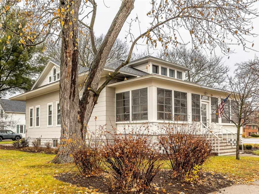 Charming 1920 Historic Home – 4 Bedrooms, 3 Baths – Stunning Original Details! Step into timeless elegance with this beautifully maintained 4-bedroom, 3-bath home, rich with character and modern comfort. Built in 1920, this corner-lot gem showcases original Birdseye maple flooring, classic woodwork with stately columns throughout, and gorgeous beveled-glass accents that make every room feel special. Home Inspection has been complete and most items on summary report have been taken care of. Enjoy multiple living spaces, including a warm and inviting wood-burning fireplace, a cozy library with built-in shelving, and a bright den perfect for work or relaxation. The full basement offers even more flexibility with a family room and a non-conforming bedroom—ideal for guests, hobbies, or extra storage. Comfort meets convenience with a newer furnace and central air, plus a unique elevator from the garage to the main floor for effortless living. The Krohn family lived there for over 50 years. Outdoor spaces are equally impressive: unwind in the beautiful enclosed front porch, entertain on the side deck, and enjoy the charm of a well-situated corner lot. Furniture is negotiable! This home is truly one-of-a-kind—full of history, character, and modern updates. Don’t miss the opportunity to make it yours!