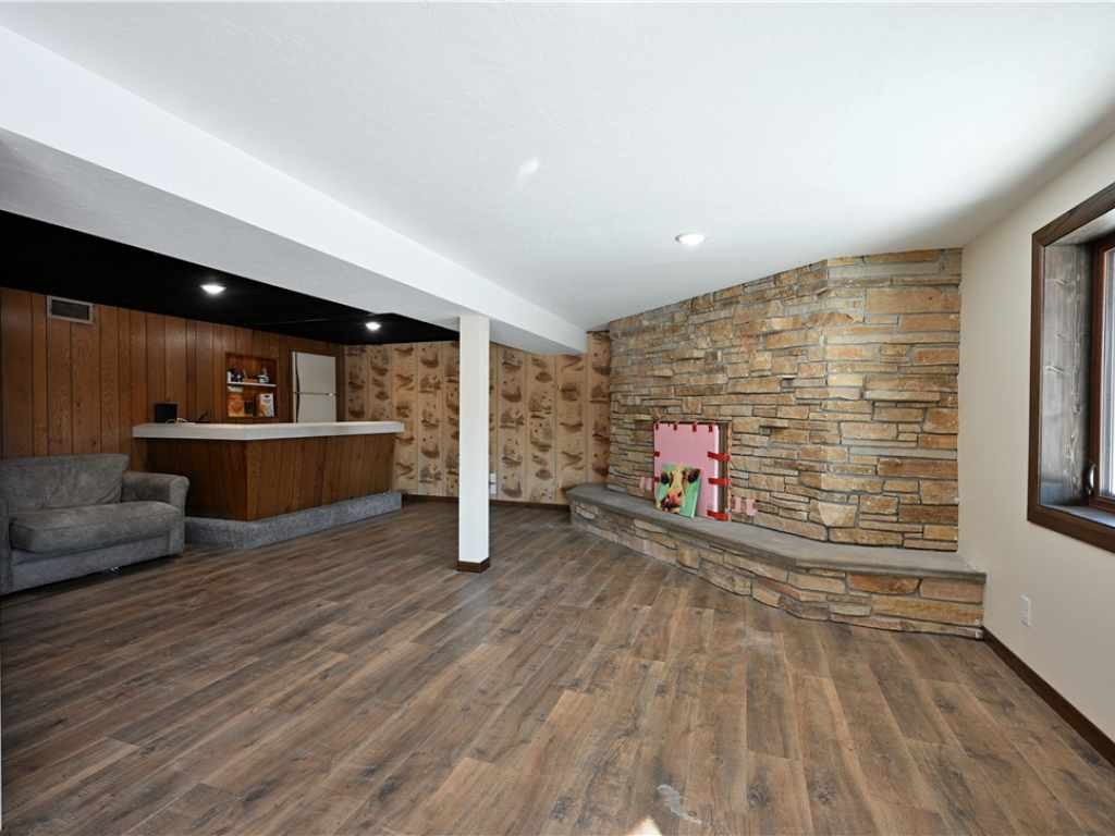 This fully updated home offers modern comfort and quality finishes throughout, featuring an open main living area floor plan with large windows that provide abundant natural light and a great view. Recent improvements include a brand-new kitchen, new laminate flooring, updated plumbing and electrical, and a new roof. The exterior showcases durable brick and LP Smart siding, along with an updated composite deck for outdoor enjoyment. The home includes an attached two-car garage and a full basement with direct access from the garage. The walk-out basement adds valuable living space with a family room, an additional bedroom, and a bathroom. Stone fireplaces on both levels add warmth and character, while large bedrooms and main floor laundry enhance everyday convenience.
