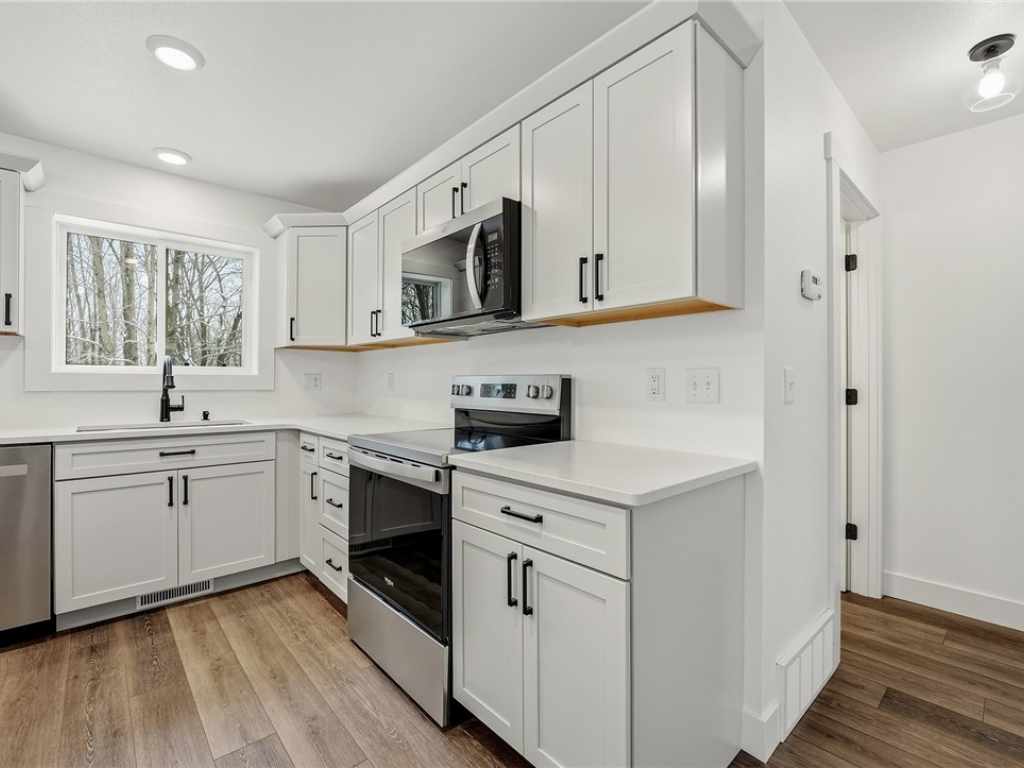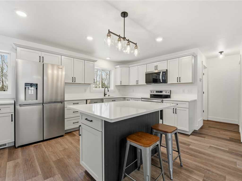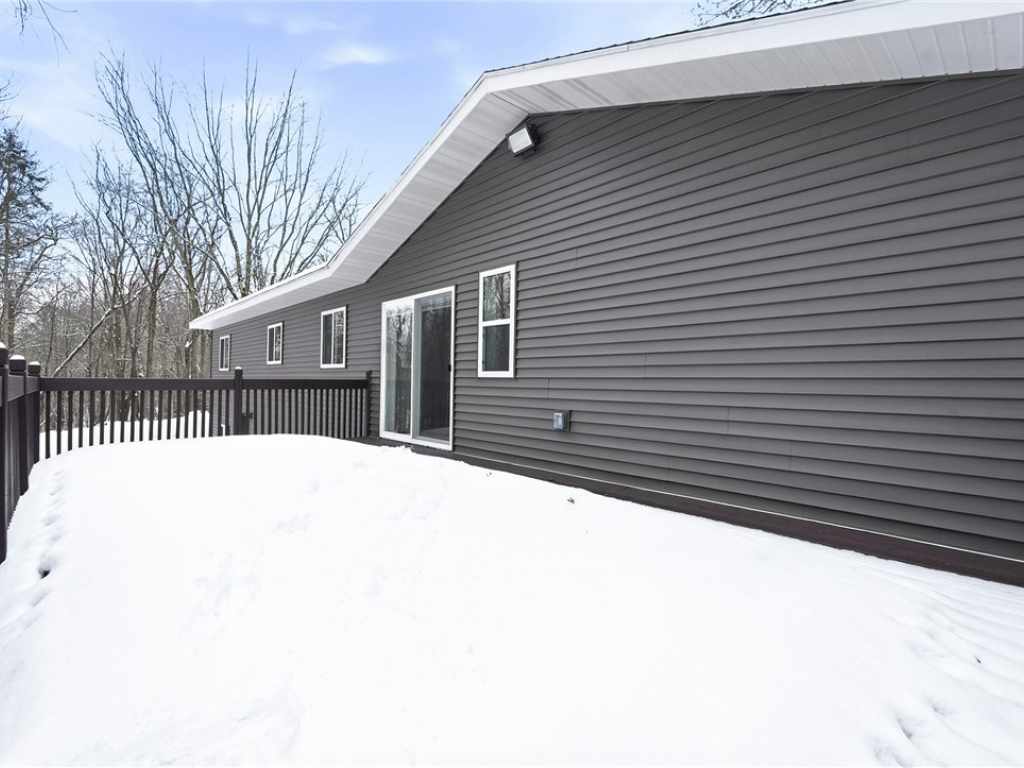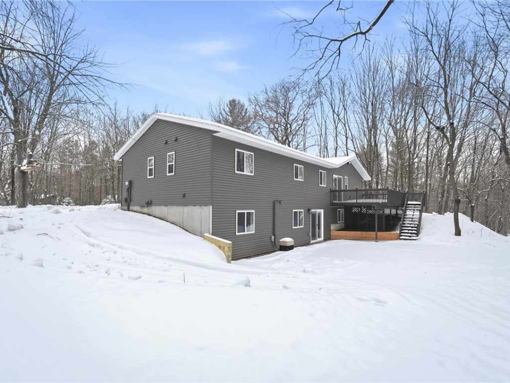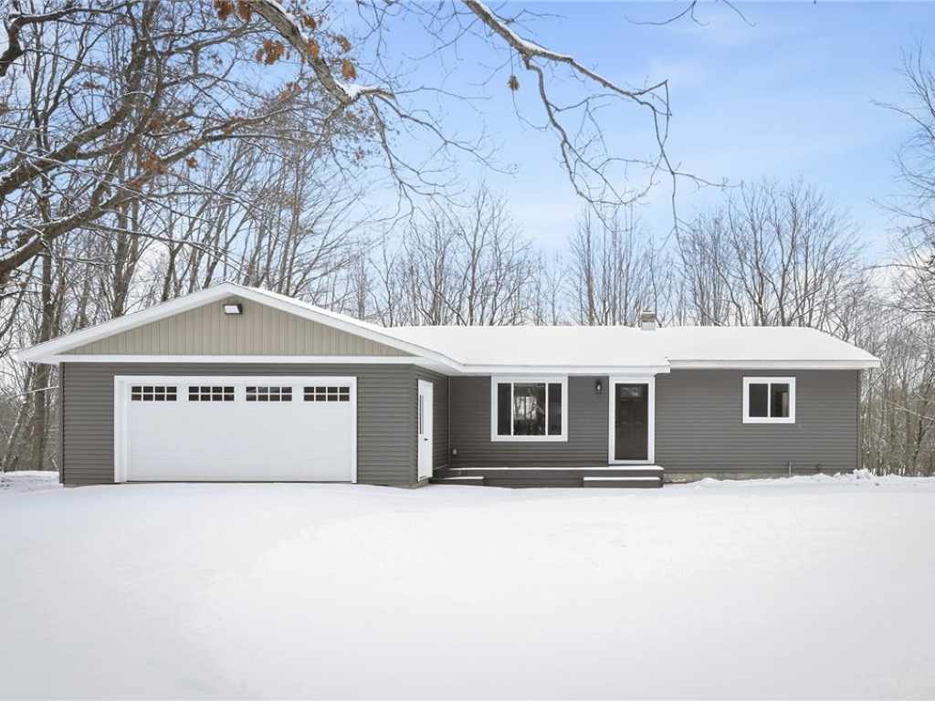 Tucked back in the trees, you’ll find this floor-to-ceiling renovated ranch-style home with main level living offering a peaceful, country feel close to Lake Wissota. Bright kitchen with quartz countertops and brand new appliances. Dining area with patio doors leading to deck and view of backyard. The main level also includes open living room, spacious primary bedroom with en suite bath and convenient washer/dryer hookups, along with an additional bedroom. The finished lower level offers a walk-out basement, family room, full bath, two more bedrooms, and a laundry/utility room with workspace and storage. Finished two-car attached garage PLUS a two car detached garage/shop! This hidden gem offers comfort, functionality, and a serene setting. Come check it out today!