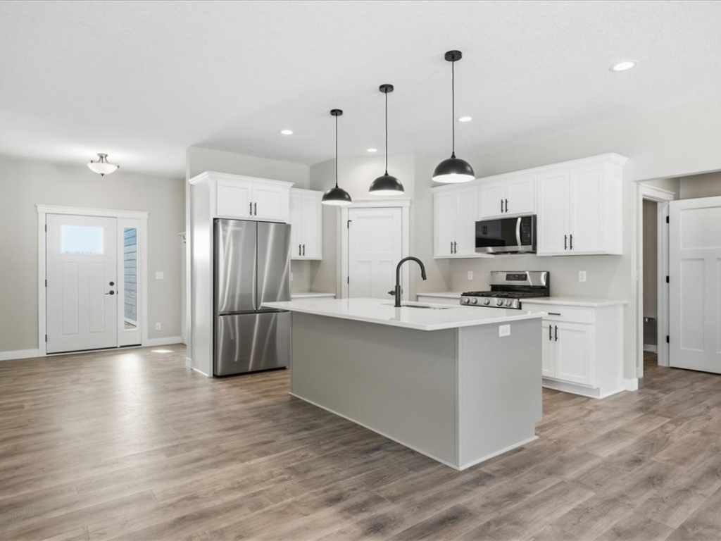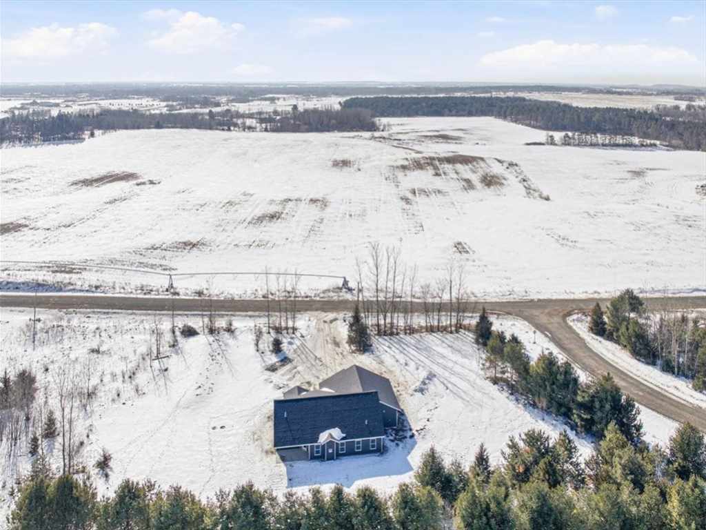 Custom-built completed new construction set on over 1.7 acres just North of New Richmond! This home offers true main-level living with no stairs inside or out, 3 bedrooms, 2 bathrooms, and 1,734 finished square feet. You’ll find quality upgrades, including Quartz countertops, eco-friendly Pure Tech Select flooring throughout, 9-foot ceilings, in-floor heat tubes roughed-in, stainless steel appliances, a gas fireplace, walk-in closets, and built-in bench seating. The oversized 3-car garage is insulated and sheet rocked for added convenience. Step outside to the covered patio and enjoy peaceful country views, your morning coffee, or an evening drink to wind down. Ideally located with easy access to Hwy 64, New Richmond, Stillwater, and Hudson. This lot also has the perfect set-up to build an additional detached garage!