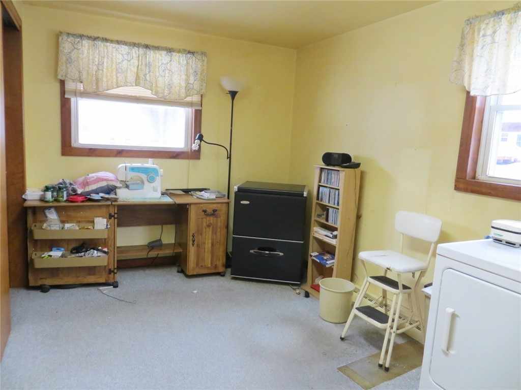 One story living with spacious living/dining/front entry area! There's also room for a table in the kitchen as currently set up. Easy access shower in the full bath. Large main bedroom with good sized closet and second linen closet. 1st floor laundry in large utility room which could also be used as an office. Oil FWA furnace is 30+ years old, metal roof on home and garage. Vise on the workbench in the basement is not included.