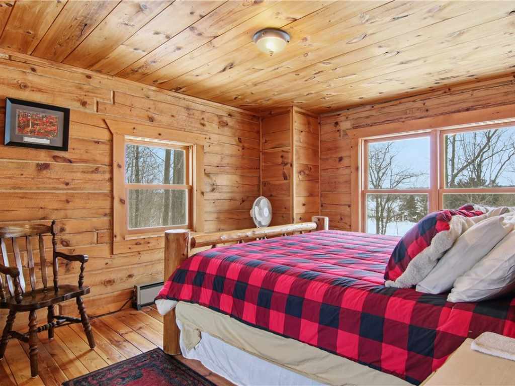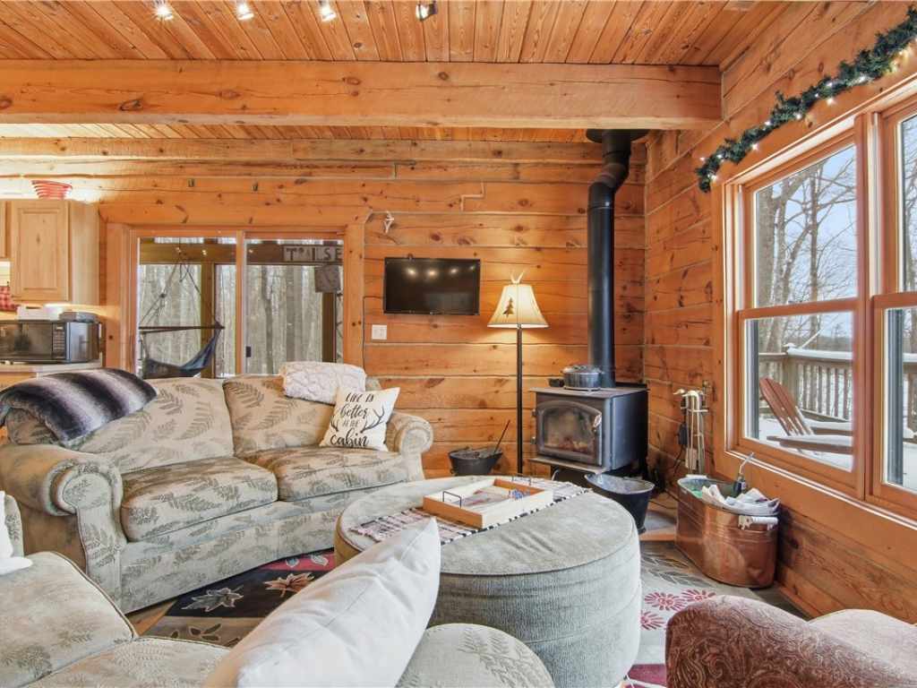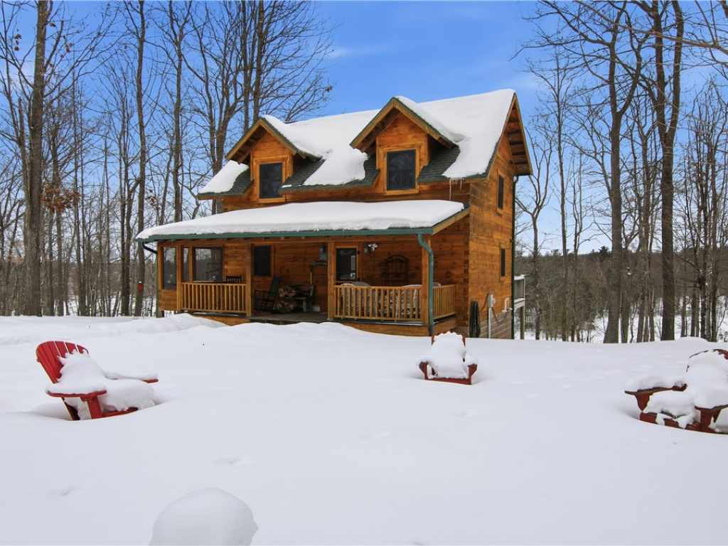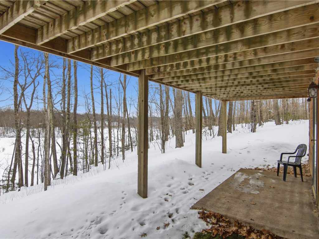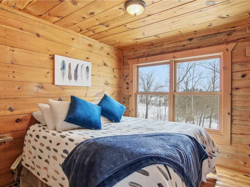 Beautiful timber-framed Adirondack-style home with creek frontage located between Round Lake and Lovejoy Lake. This well-maintained property offers three bedrooms and two full baths, featuring warm wood finishes and classic cabin character throughout. The main level includes an inviting living area with a wood stove, an open layout, and access to a large screened porch, covered porch, and expansive deck with scenic views. The full walkout lower level provides additional living space and storage options. Exterior amenities include a three-car detached garage, a well-built wood shed, and generous outdoor areas for recreation and relaxation. The property is within walking distance of Lakeview Golf Course and only minutes from Round Lake, offering convenient access to local amenities and outdoor activities. A rare opportunity to own a quality timber-frame home in a desirable Northwoods setting.