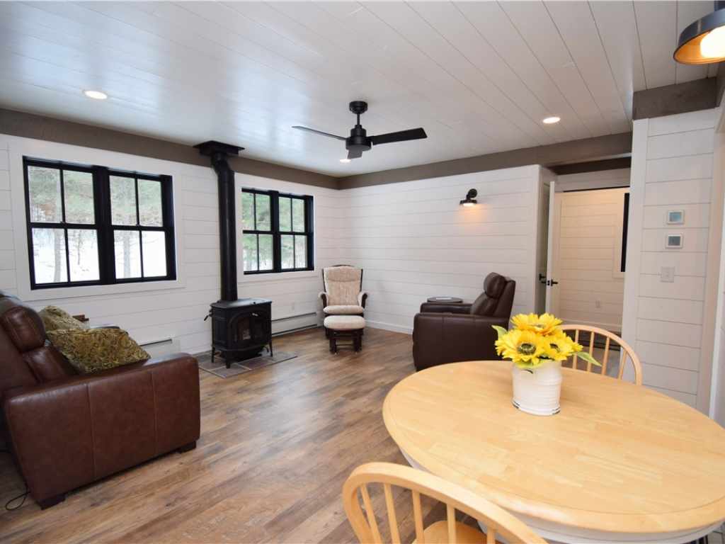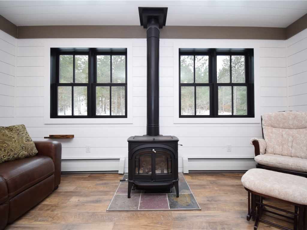 Nothing average about this NEW thoughtfully designed state-of-the-art Northwoods cottage, nestled among 3.67 acres of majestic pines—secluded from the hustle and bustle of it all. This impressive custom build showcases the best of the best & includes select turn-key items for an easy transition to lake-country living. Casual effortless elegance defines the fit and finish. The main-level tuck-under garage is fully finished & features state-of-the-art in-floor hot water heat, epoxy floor, crisp white nickel gap walls evoking that perfect cottage feel, contrasting black Marvin Elevate Series windows, two-panel white doors w/black hardware, & built-in cabinetry. This versatile space is ideal for sleeping or a family room & includes a garage door w/a Lifestyle retractable screen to let the outdoors in. You’ll appreciate the dedicated office & ¾ bath with a custom tiled walk-in shower. Upstairs continues the cozy farmhouse aesthetic with one bedroom, a second ¾ bath adorned w/classic subway tile, tasteful paint selections, unique lighting fixtures, & a convenient laundry closet w/hookups. The inviting living area centers around a Vermont Castings free-standing wood fireplace to take the chill off cool Northwoods evenings. The space opens to an efficient, thoughtfully designed kitchen featuring a farmhouse Kohler sink, stainless steel appliance suite, & induction cooktop. No expense was spared in construction: LP Smart Side siding, 2x6 construction, R-62 attic insulation, gutters, 3-bedroom septic system, drilled well, mini-split heating/cooling, Blink camera system, Starlink internet, whole-house filtration system, and Generac transfer switch for generator readiness—the list goes on. If privacy, trails galore, county land & access to Nancy Lake—a fantastic recreational lake just a stone’s throw away—are what you seek, this is your opportunity to own the ultimate Northwoods retreat.