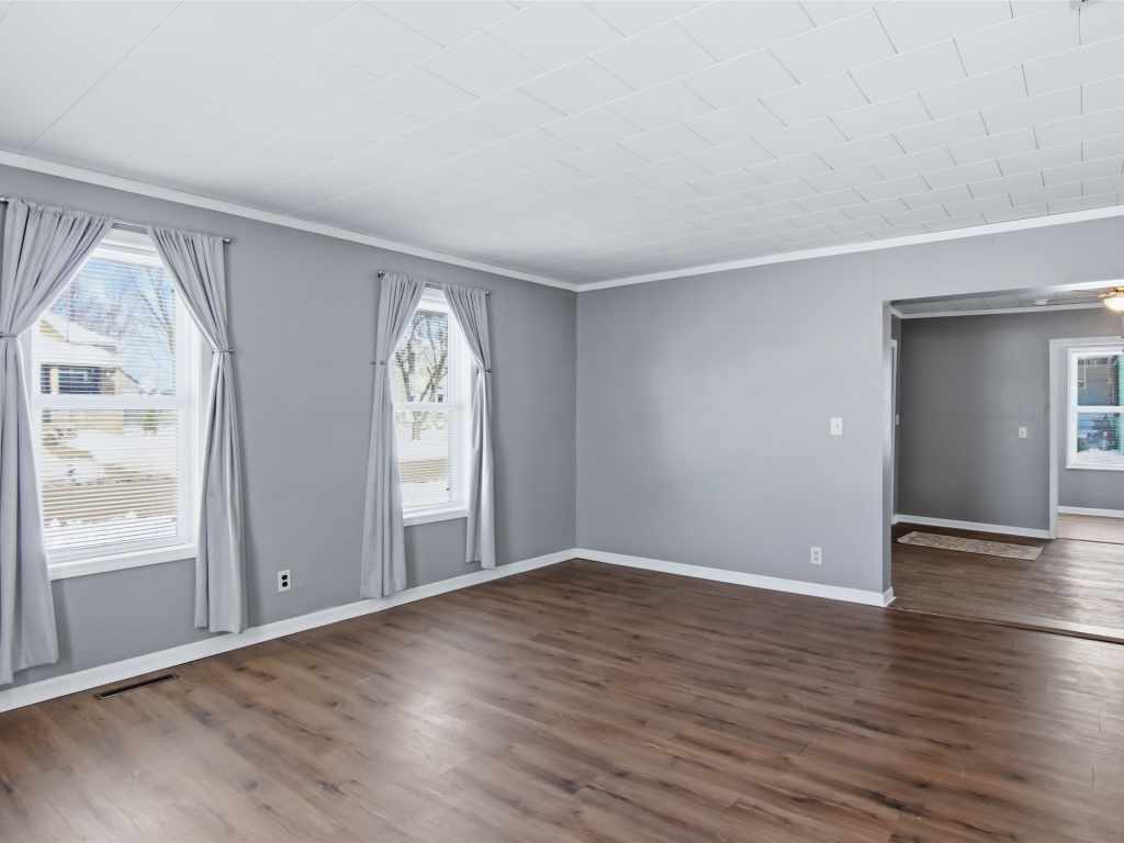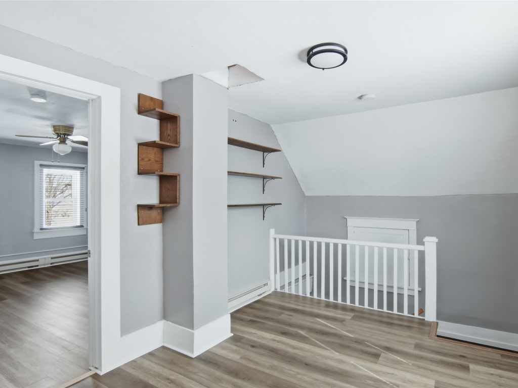 1.5-story home in Chippewa Falls with 3 bedrooms and 1 full bath. Main floor bedroom and laundry for single-level living. Detached 1-car garage with additional parking off the alley and a storage shed. Recent updates include new flooring, fresh paint, and leveled floors. Bathroom updated with new subfloor, fixtures, and plumbing. Electrical updated with removal of knob and tube and service upgrades. All between 2023- 2025. Main floor bedroom new ceiling fan. Upper level features one bedroom with landing and baseboard heat. Kitchen appliances, washer, and dryer are included. Furnace 2015, water heater 2017, roof and windows approximately 9 years old. Home built in 1895 with an addition in the 1930s per seller.