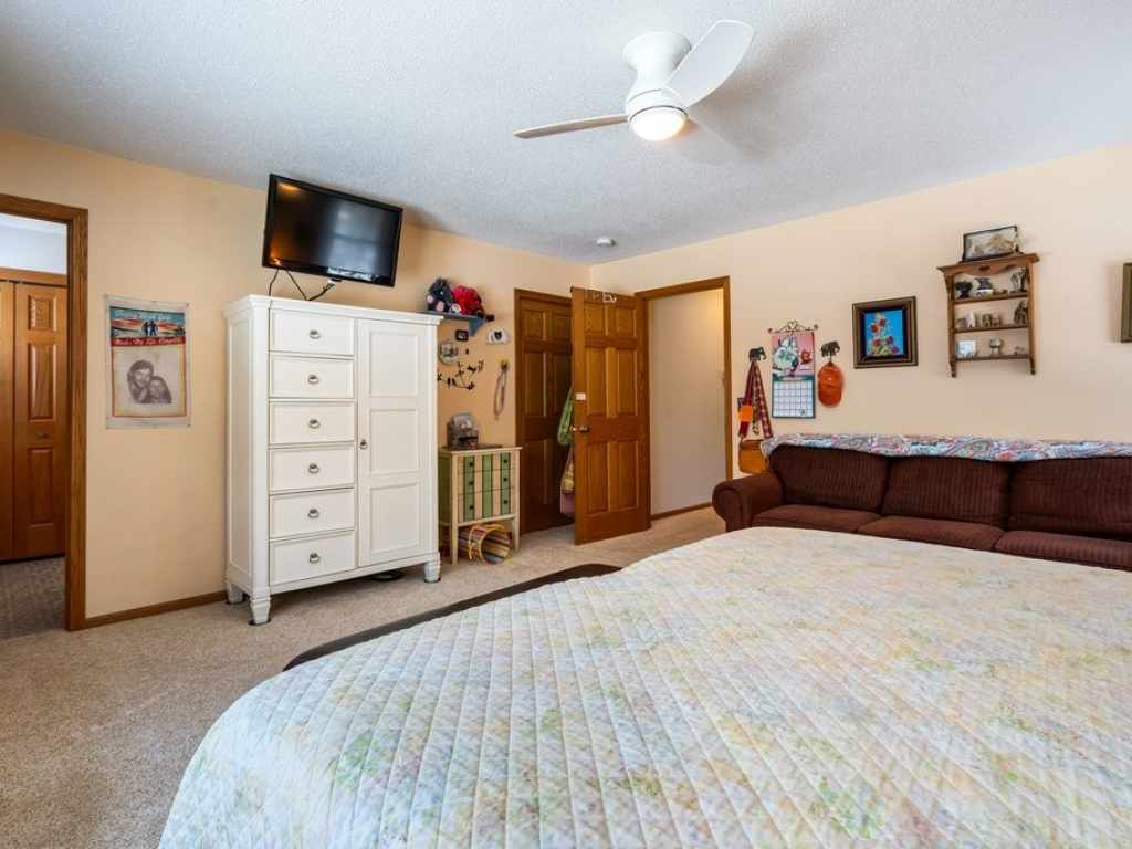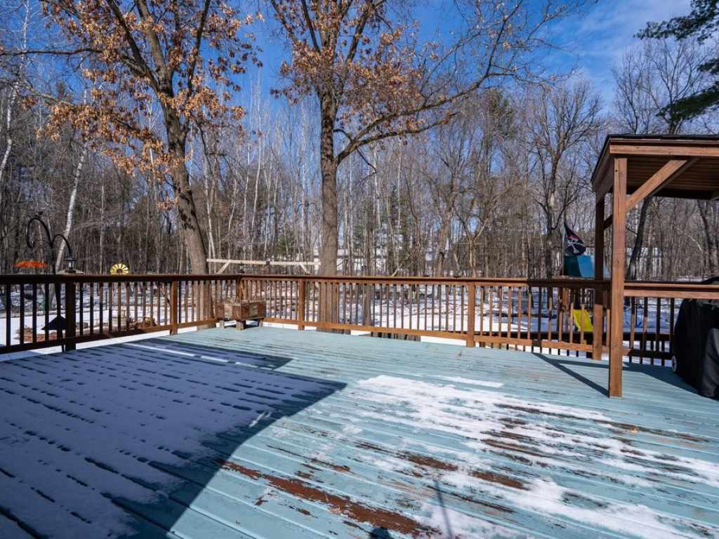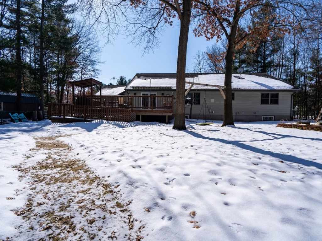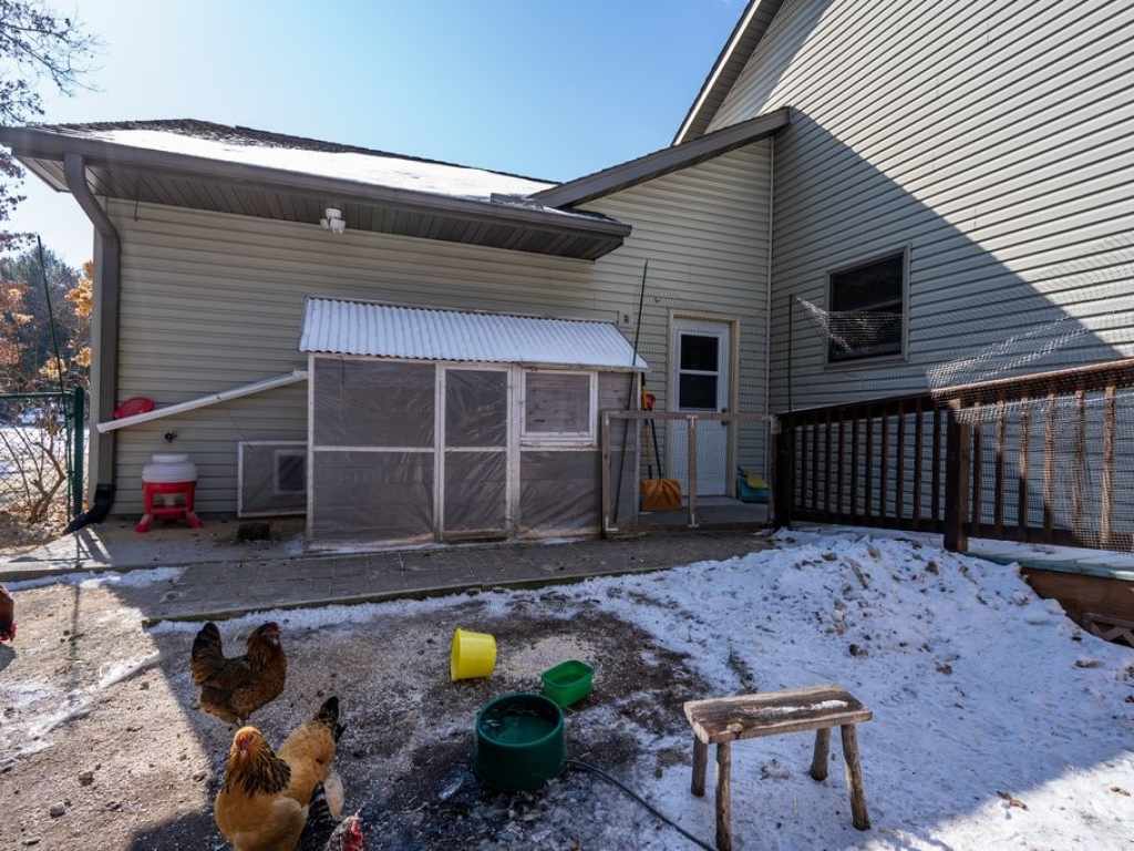 Spacious, thoughtfully designed, and exceptionally well maintained, this 4-bedroom, 3-bath home offers the perfect blend of comfort, functionality, and quality throughout. Located on a quiet dead-end cul-de-sac, you’ll enjoy privacy and minimal traffic while still being conveniently close to Menomonie amenities. Step inside to an inviting open-concept layout highlighted by vaulted ceilings and generous room sizes throughout. The kitchen, dining, and living areas flow seamlessly together, creating an ideal space for everyday living and entertaining. Main floor laundry adds everyday convenience, and every bedroom is impressively sized to accommodate a variety of needs. The owner’s suite features a custom walk-in shower and a spacious en-suite bath designed for comfort. The finished lower level expands your living space with a very large family room complete with a wet bar and in-floor heat, creating the perfect space for gatherings year-round. The lower level also includes an additional bedroom with an oversized walk-in closet, abundant storage throughout, and a storm shelter area currently used as a wine cellar. Outside, the fully fenced backyard offers plenty of room to relax and entertain. Enjoy the expansive deck with a Sun Setter retractable awning for shaded comfort, plus a swing set that stays with the property. Chickens and a chicken coop are currently on site and can remain if desired, or the seller will remove them prior to closing. A sprinkler system helps keep the yard looking its best. Additional highlights include a 3-car heated and insulated attached garage, a new AC unit installed in 2025, all new Andersen windows on the upper level (less than five years old), a rented whole-house water filtration system, and a radon mitigation system already in place. For added peace of mind, this home has been pre-inspected. With its incredible storage, quality upgrades, and desirable cul-de-sac setting, this home truly offers space to live, gather, and grow.