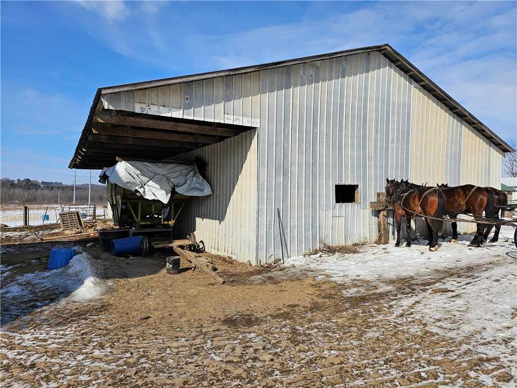 Charming rural property situated on 31.72 scenic country acres, featuring a home with multiple outbuildings ideal for farming, storage, or hobby use. The property includes two spacious barns measuring 38' x 52' and 48' x 56', a 36' x 56' pole shed, an 18' x 30' calf barn, and an additional storage shed. An allowance is being offered toward the installation of a new septic holding tank, reconnection of electricity, and reconnection of the well—providing a great opportunity to customize and restore the property to your needs.