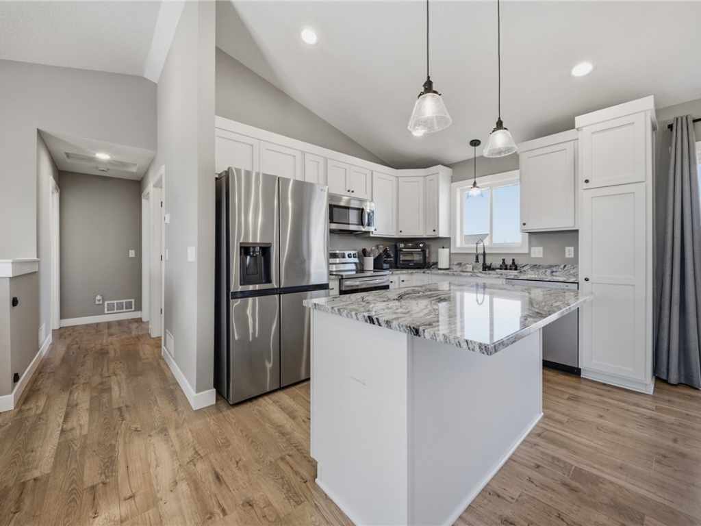 This beautifully maintained home, built in 2024, offers a rare opportunity to enjoy the benefits of newer construction without the wait. Thoughtfully cared for over the past two years, this move-in ready home allows you to skip the time, rising costs, and uncertainty of building while still enjoying the modern design that buyers desire. This home provides an inviting open-concept layout featuring vaulted ceilings, abundant natural light, and durable laminate flooring throughout the main living areas. The bright white kitchen serves as the centerpiece of the home, showcasing granite countertops, ample cabinetry, and a seamless flow into the dining and living spaces—perfect for both everyday living and entertaining. The main level includes two comfortable bedrooms and a full bathroom along with the primary living areas. Downstairs, the finished walkout basement expands your living space with a large family room, an additional bedroom, and another full bathroom. The walkout patio door provides easy access to the patio beneath the deck, a fenced-in backyard, and an outdoor space ideal for relaxing or hosting guests. This property is situated close to walking trails, dog parks, city conveniences, local hotspots, and the New Richmond Golf Club. Enjoy the layout and complete finishes of newer construction, without the hassle of building. Do not miss this opportunity, reach out to schedule your private showing today! This property is owned by a licensed real estate broker.