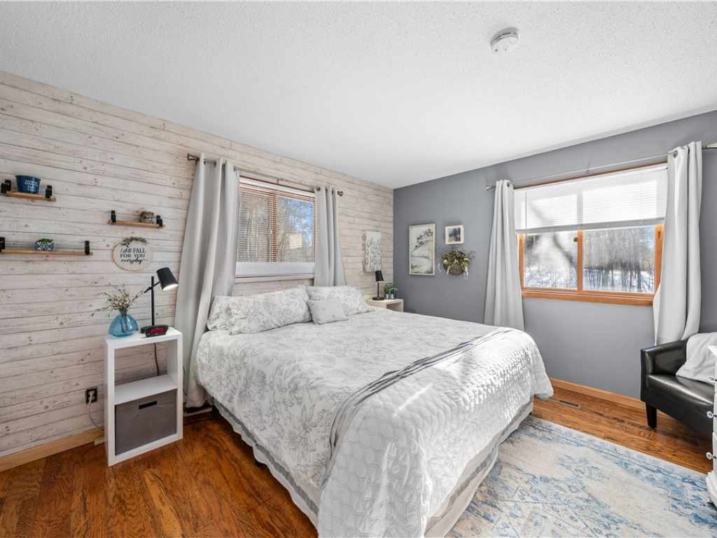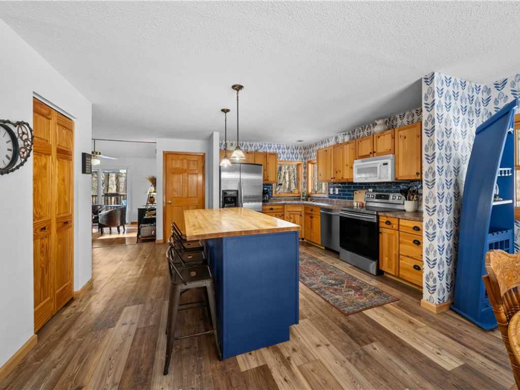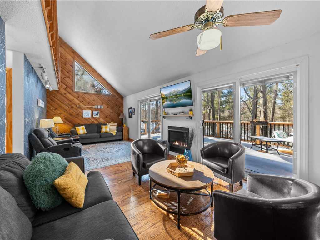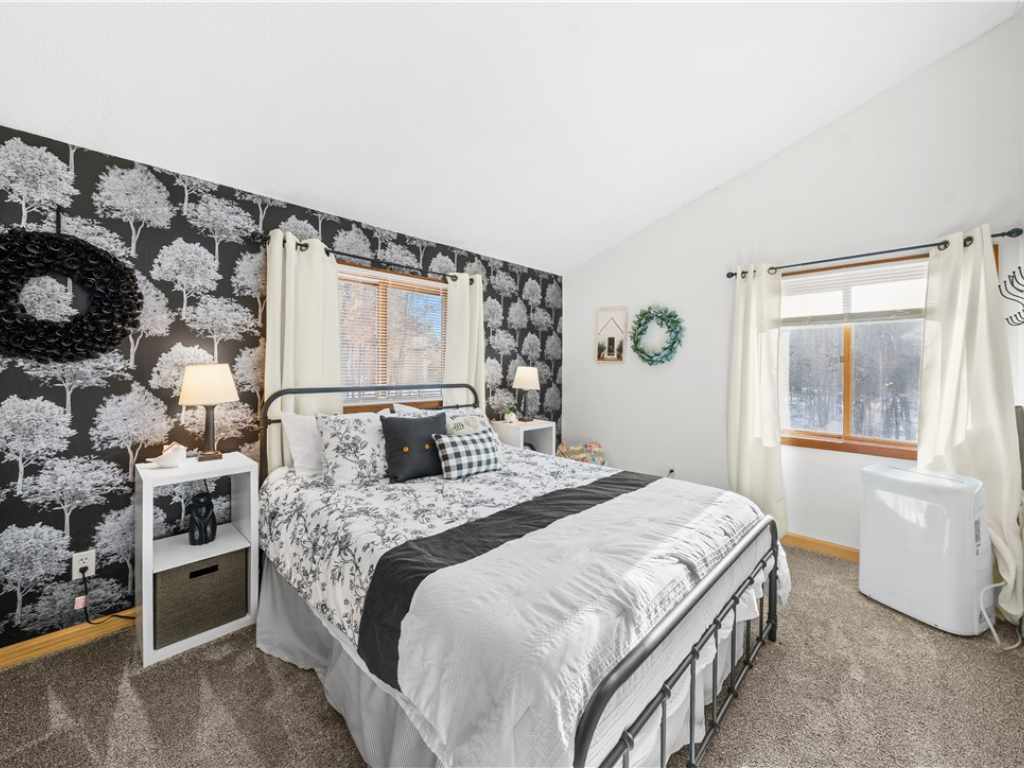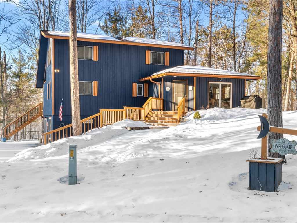 Extensively updated and improved - 1.5 wooded acres on a quiet cul-de-sac in Voyager Village. Built in 1980 and completely reimagined! A flexible layout with 3 finished levels of living spaces. Pops of color throughout the home highlight character and perfectly compliment the updates. Vaulted ceilings, hardwood floors, fireplace, and sliding doors give easy access to new front and back decks. A catwalk overlooks the bright space and provides seamless openness.