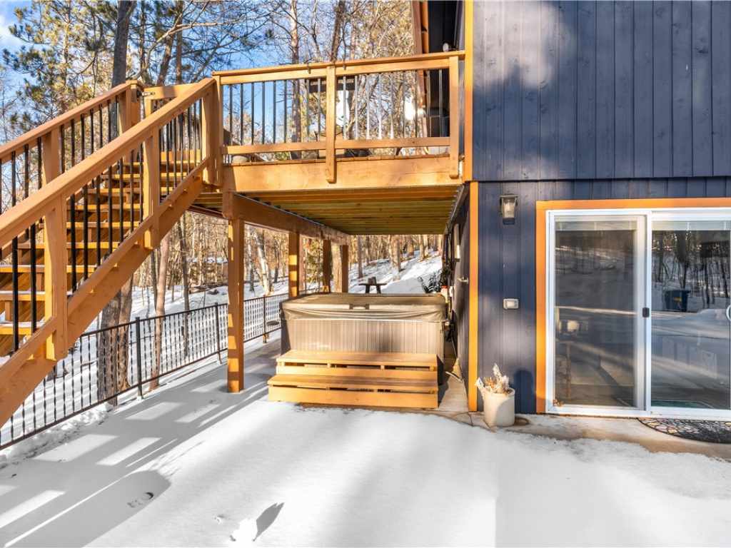 Upstairs, 2 bedrooms and a Jack-and-Jill full bath situated between. The walkout lower level, once a tuck-under garage, fully converted to useable living space, additional bed, bath, laundry, and access to outdoor patio with hot tub.