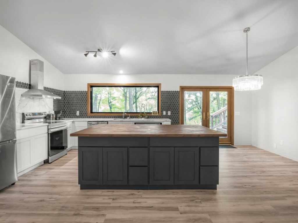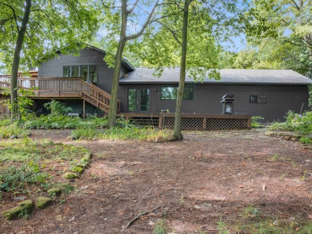 Is this the year you finally have that lake property? Enjoy the full summer cruising the water, fishing, and relaxing in a peaceful setting. Being only 1 hour from the center of the Twin Cities and located on 245-acre Big Lake, there are 2 more additional connecting lakes: Wind and Church Pine to explore. This more unique layout with a modern twist offers an open kitchen - living room concept with vaulted ceilings. A gas fireplace keeps the area cozy. New LVP flooring extends throughout the home. The kitchen has a larger butcher block center island, new stainless steel appliances, new cabinets, and a big picture window overlooking the lake. Off the patio door is a large multi-level deck that connects with the upper bedrooms. On the upper level is a primary bedroom with an ensuite 3/4 bathroom. A second bedroom with an attached office area makes for a great work office. It's a flex room with quick access to the top deck that is set up for an outdoor hot tub. In the lower level are 2 more bedrooms, a full bath, and an updated hot water heater, well pressure tank, and furnace. The home has great views from all directions. Large mature trees offer ample shade and privacy with many surrounding perennials. The waterfront is just a short, gentle slope and about 15 steps down. The boat launch is even located across from your dock! A brand new roof was also just installed last year. Whether you want to relax, boat, fish, or enjoy nature, come take a look today!