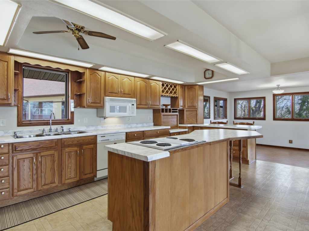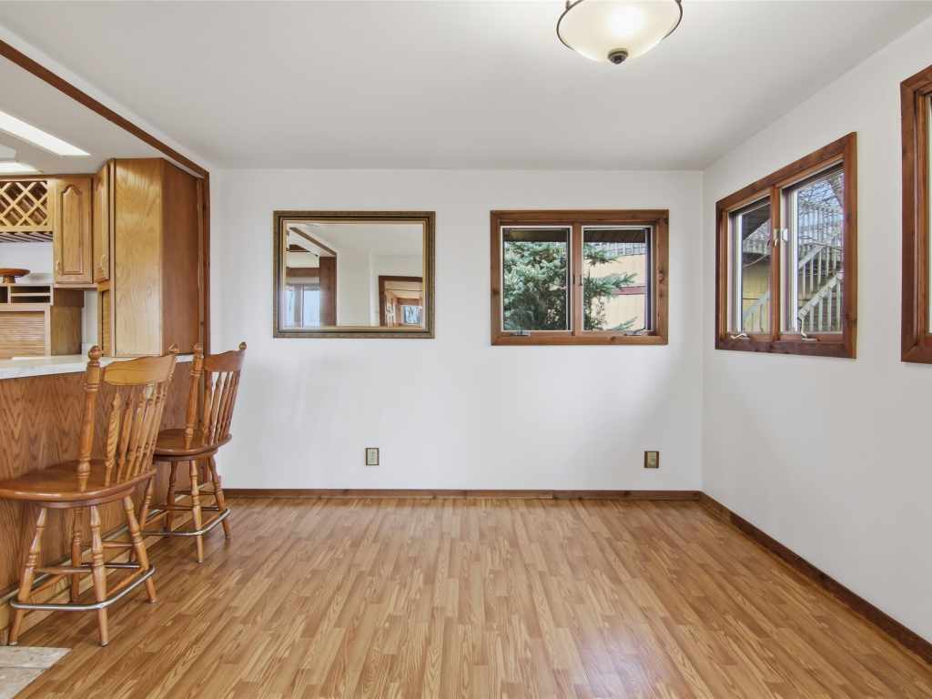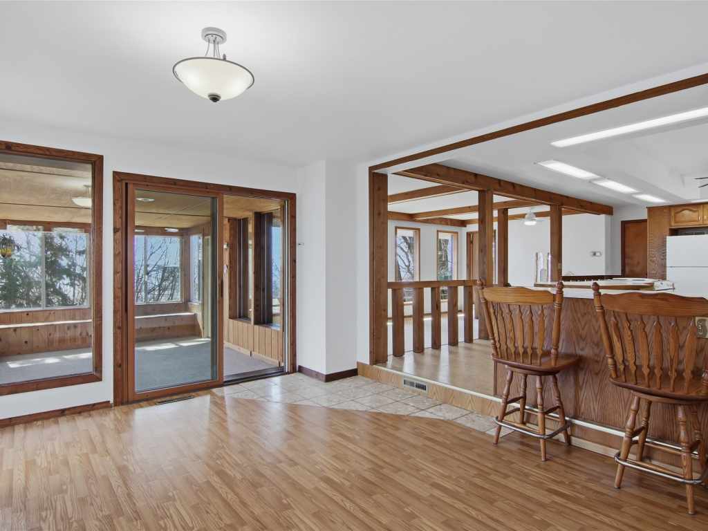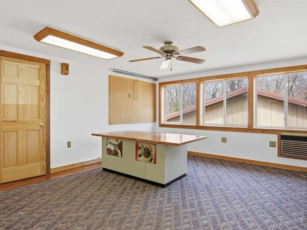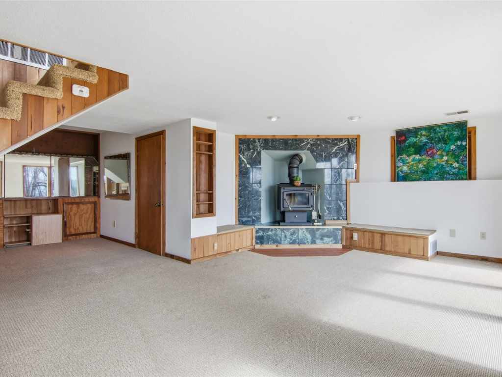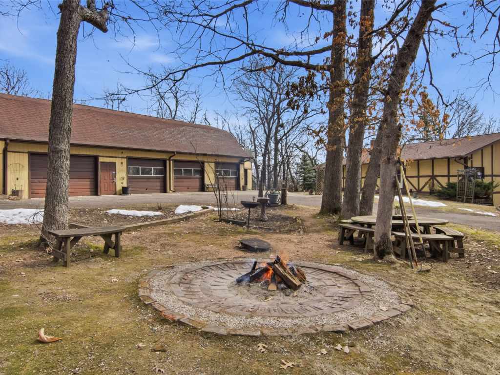 Tucked on over 3 wooded acres just on the outskirts of the city, comprised of two combined parcels, this one-of-a-kind hillside property offers a truly private, park-like setting with stunning views in every direction. The home is filled with natural light thanks to dramatic floor to ceiling windows, highlighting the open concept main level featuring a spacious kitchen, pantry, dining, and living area, along with a 4 season room, half bath, and a primary suite complete with a walk in closet, private bath, and access to a deck overlooking the scenic landscape. The walkout lower level continues to impress with more expansive windows, a cozy family room with a wood burning stove, a second bedroom, full bath, and generous storage space. Ideal for those seeking a live work opportunity, the property includes a 50x30 pole building and a 60x30 four car garage with finished, temperature controlled upper level spaces (15x15 and 14x39) perfect for an office, gathering area, or additional storage. Unique features throughout, including a walk in cooler in the shop, a temperature and humidity controlled trophy room with underground bunker access, and a former 50 ft indoor shooting range (not currently operable), make this an exceptional and rare offering. Per seller, the roof on the home was replaced in 2022. Pre inspection report attached.