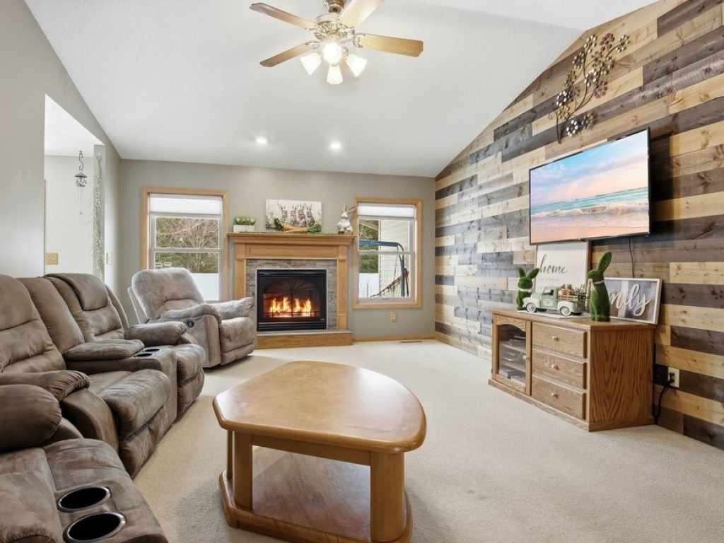 Welcome to this beautifully maintained, PREINSPECTED 3+ bedroom, 2 bath ranch in the highly sought-after North Bloomer neighborhood. Located within walking distance to parks and the lake, this home offers a setting that’s ideal for an active, connected lifestyle. Step inside to vaulted ceilings and an abundance of natural light from newer Andersen windows throughout, creating a bright and welcoming space. The living room features a cozy gas fireplace and a beautiful wood accent wall. The spacious primary bedroom includes a private en-suite bath, while two additional main-level bedrooms and a full main-level bath provide plenty of space for family, guests, or a home office. Main floor laundry just off the garage adds extra convenience to your daily routine. The finished basement offers an expansive family room, a dedicated home gym area, and an additional room that could easily serve as a fourth bedroom with the addition of an egress window. Outside, you’ll find plenty of room to play, garden, and gather. The backyard features extensive landscaping with gardens, flowers, blueberries, strawberries, and Honeycrisp apple trees—perfect for outdoor enjoyment and seasonal picking. A new deck, concrete patio, and firepit create ideal spaces for relaxing or entertaining, while a berm and tree line add privacy and a sense of space. An electronic pet fence keeps furry family members safe, and an extra parking pad provides convenient space for a camper or boat. This home also features numerous recent upgrades, including new Andersen windows throughout, a partial roof replacement, updated landscaping, and much more. This home checks all the boxes for space, updates, and a location you’ll love—schedule your showing today!